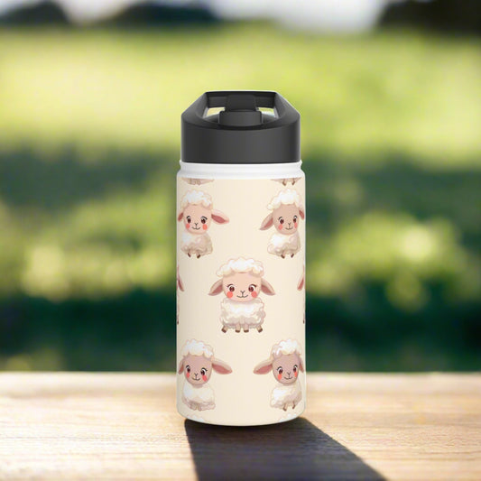 Insulated Water Bottle, 12oz, Cute Baby Lamb - Double Walled Stainless Steel Thermos, Keeps Drinks Hot or Cold