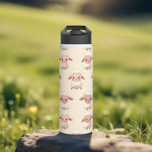 Insulated Water Bottle Thermos, 18oz, Cute Baby Lamb - Double Walled Stainless Steel, Keeps Drinks Hot or Cold