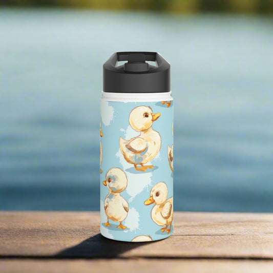 Insulated Water Bottle, 12oz, Cute Baby Ducklings - Double Walled Stainless Steel Thermos, Keeps Drinks Hot or Cold