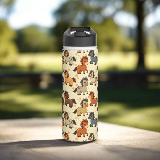Insulated Water Bottle Thermos, 18oz, Cute Baby Horses - Double Walled Stainless Steel, Keeps Drinks Hot or Cold
