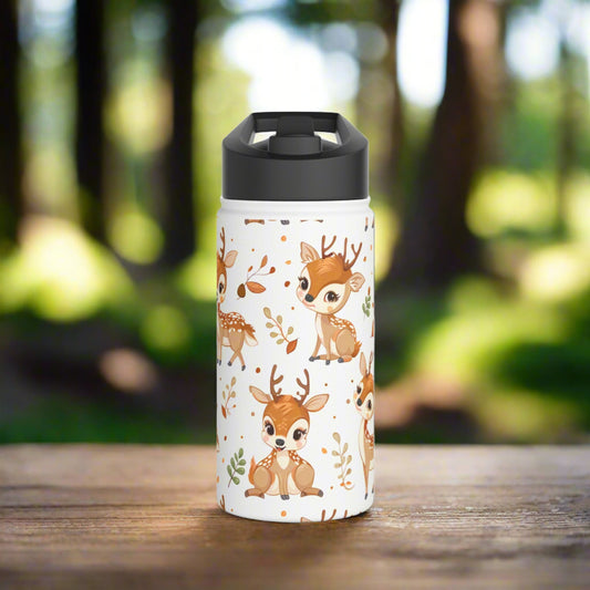 Insulated Water Bottle, 12oz, Cute Baby Deer - Double Walled Stainless Steel Thermos, Keeps Drinks Hot or Cold