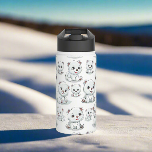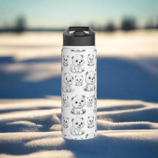 Insulated Water Bottle Thermos, 18oz, Cute Polar Bear Cubs - Double Walled Stainless Steel, Keeps Drinks Hot or Cold