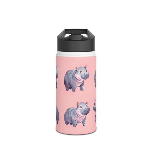 Insulated Water Bottle, 12oz, Cute Baby Pygmy Hippo - Double Walled Stainless Steel, Keeps Drinks Hot or Cold