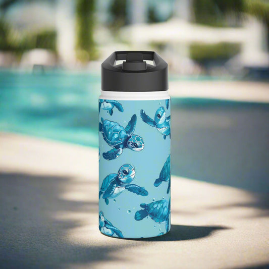 Insulated Water Bottle, 12oz, Cute Baby Sea Turtles - Double Walled Stainless Steel Thermos, Keeps Drinks Hot or Cold