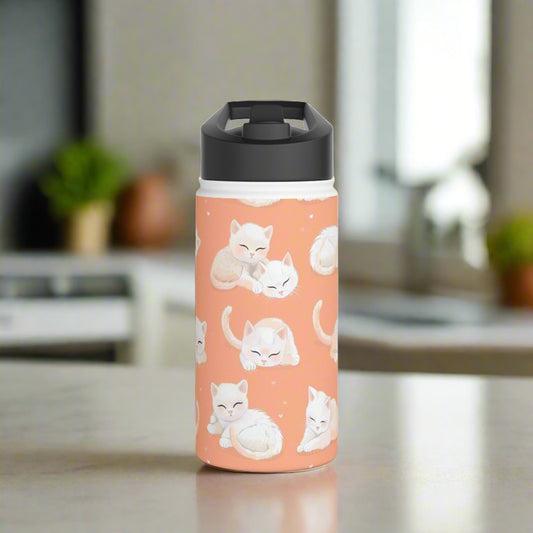 Insulated Water Bottle Thermos, 18oz, Cute Kittens - Double Walled Stainless Steel, Keeps Drinks Hot or Cold