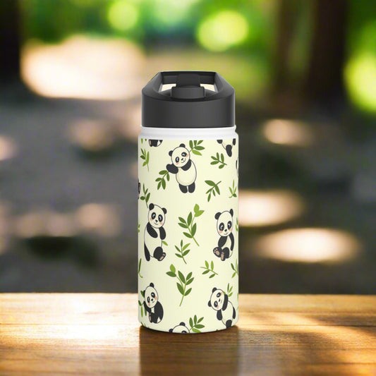 Insulated Water Bottle, 12oz, Cute Panda Bear Cubs - Double Walled Stainless Steel Thermos, Keeps Drinks Hot or Cold