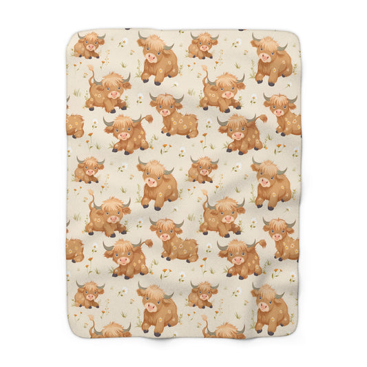 Sherpa Fleece Blanket with Cute Highland Cow Design, 50×60" Cozy Blanket