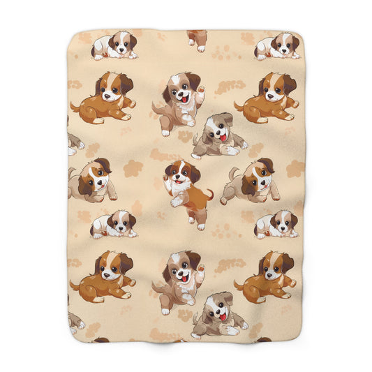 Sherpa Fleece Blanket with Cute Puppy Dog Design, 50×60" Cozy Blanket