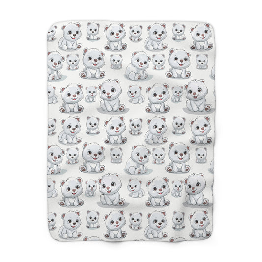 Sherpa Fleece Blanket with Cute Polar Bear Cub Design, 50×60" Cozy Blanket