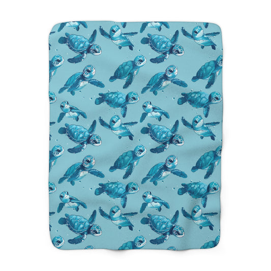 Sherpa Fleece Blanket with Cute Baby Sea Turtles Design, 50×60" Cozy Blanket