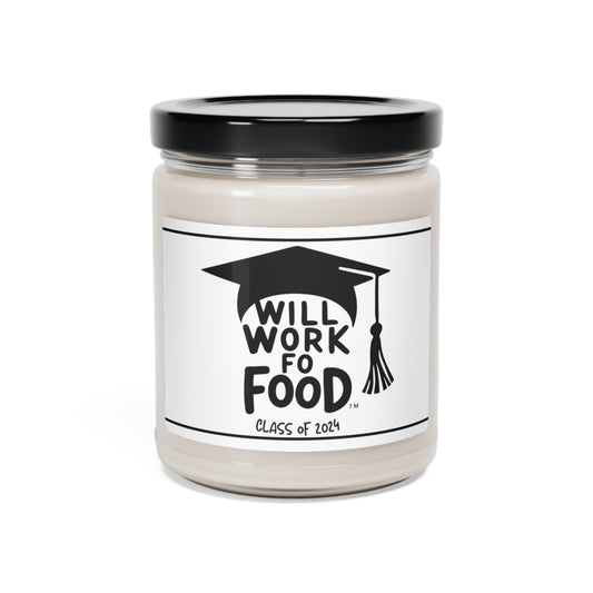 Funny Graduation Gift, Unscented Candle, (Will work fo Food) - Funny Gift for Grads and Foodies