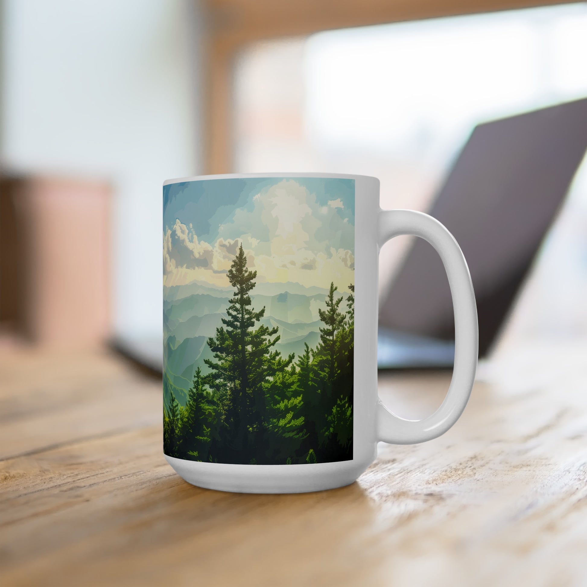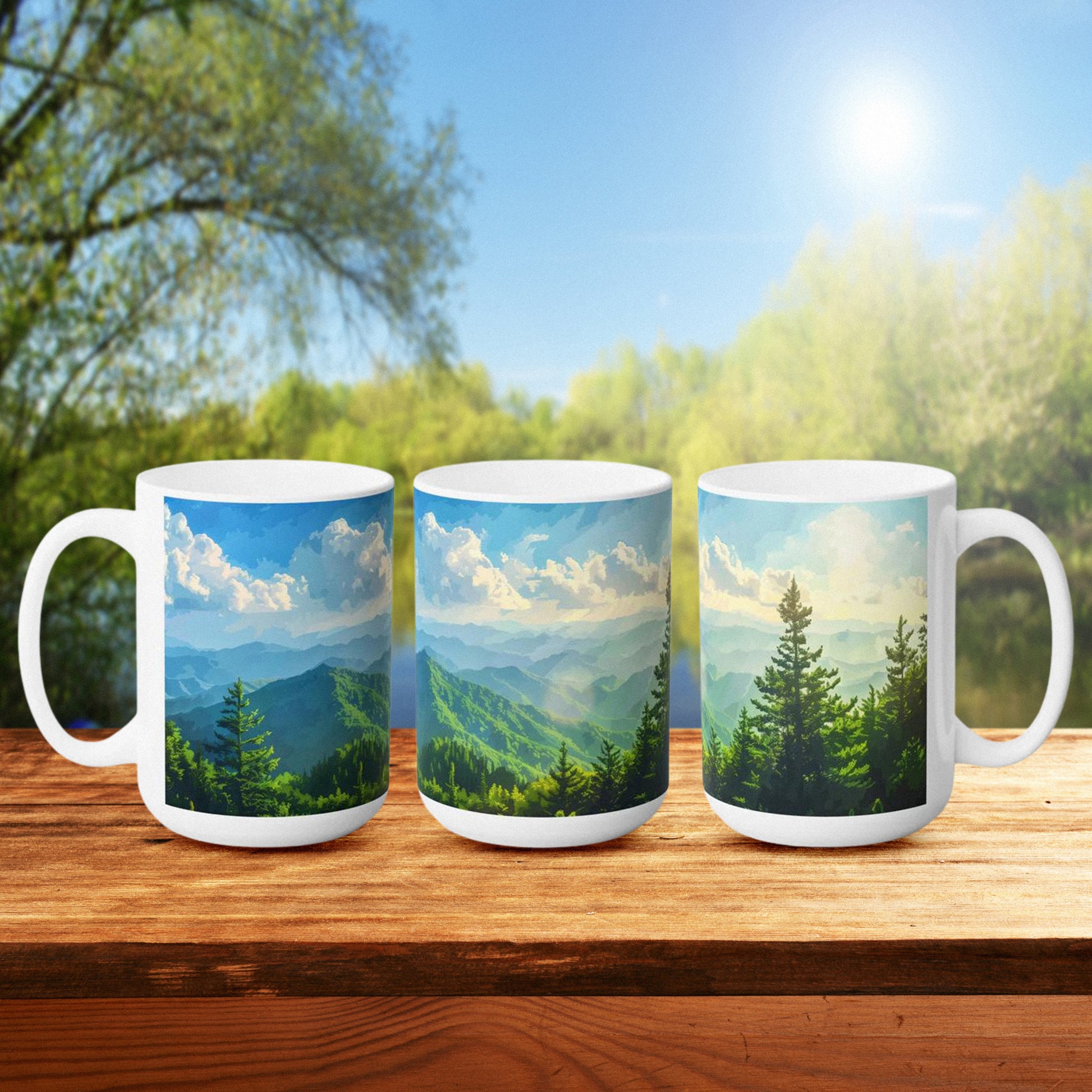 Large Collectible Coffee Mug with Great Smoky Mountains National Park Design, 15oz