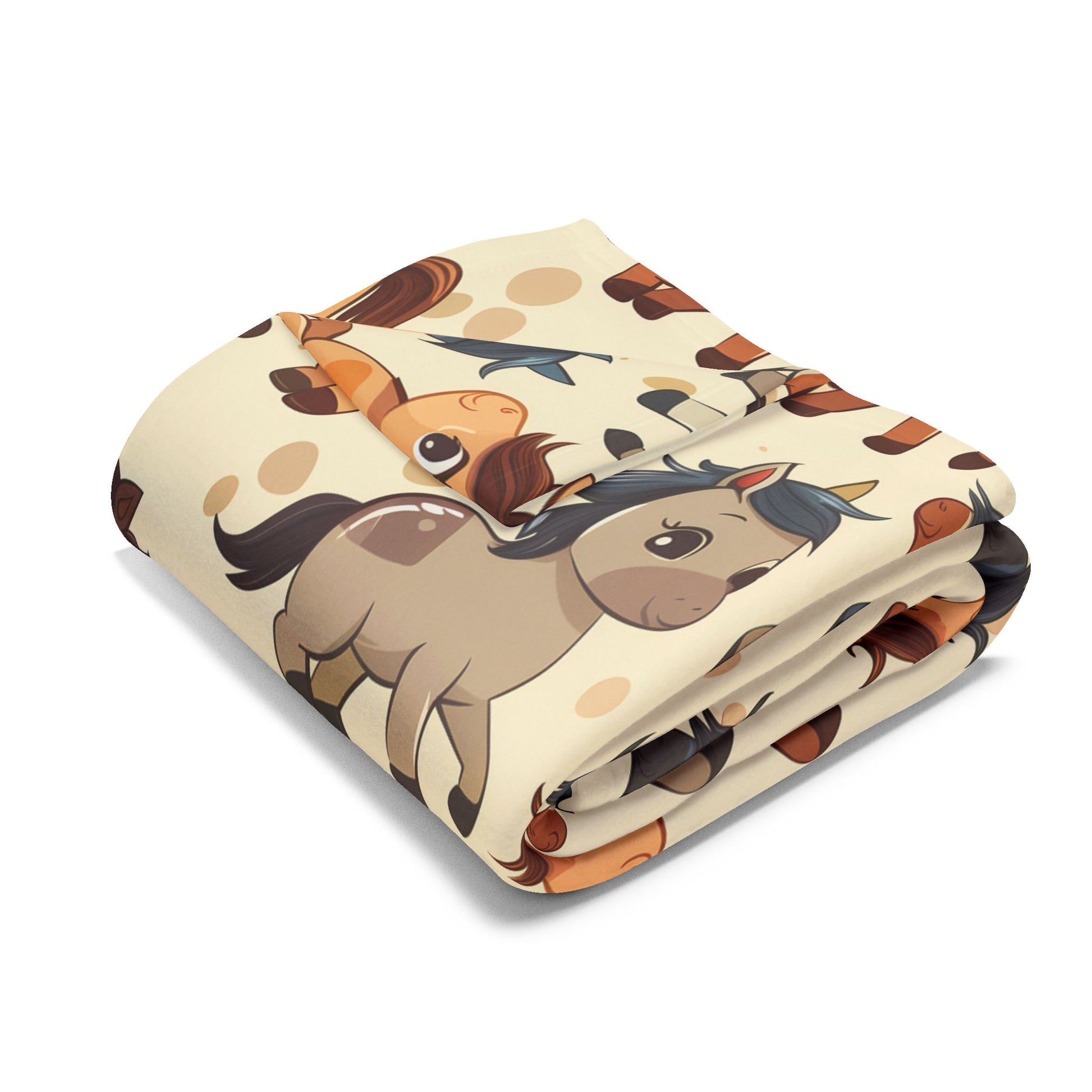 Dive into comfort with our Fleece Throw Blanket, featuring adorable baby horses. Measuring 30 x 40 inches, this blanket is crafted from medium-weight fabric (0.1" thickness) that provides an ideal balance of warmth and softness. Perfect for cozying up at home, enjoying a beachside picnic, or taking along on family road trips, this blanket adds a delightful touch of ocean charm to any setting. With double-stitched edges and made from 100% polyester, it’s both durable and gentle, making it perfect for kids, toddlers, and pets.