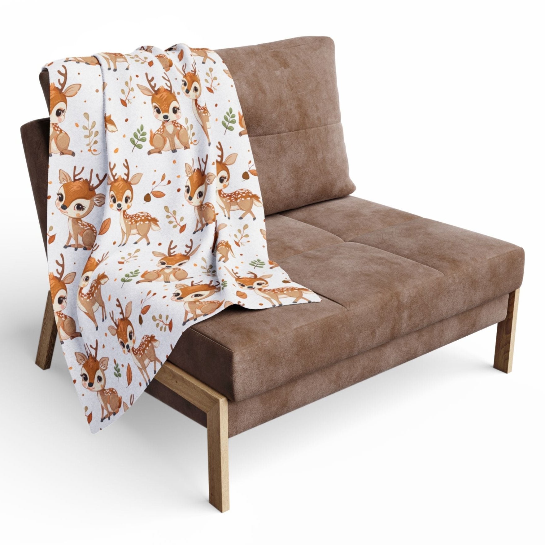 Embrace the coziness of the season with our Fleece Throw Blanket, featuring an enchanting baby deer/reindeer motif. Measuring 30 x 40 inches, this blanket is crafted from medium-weight fabric (0.1" thickness), offering the perfect combination of warmth and softness. Whether you're snuggling at home, on a holiday road trip, or enjoying a winter camping adventure, this blanket is a charming and functional addition to your cozy collection. With durable stitched edges and made from 100% polyester fleece, it’s designed to be both long-lasting and gentle, perfect for kids, toddlers, and pets.
