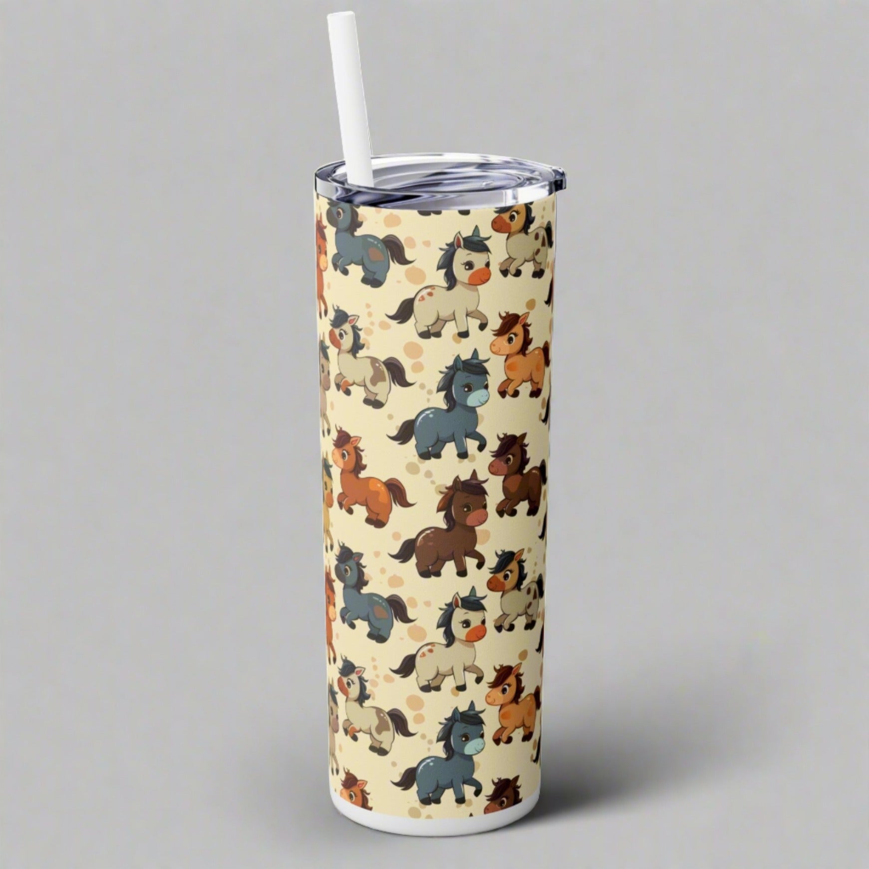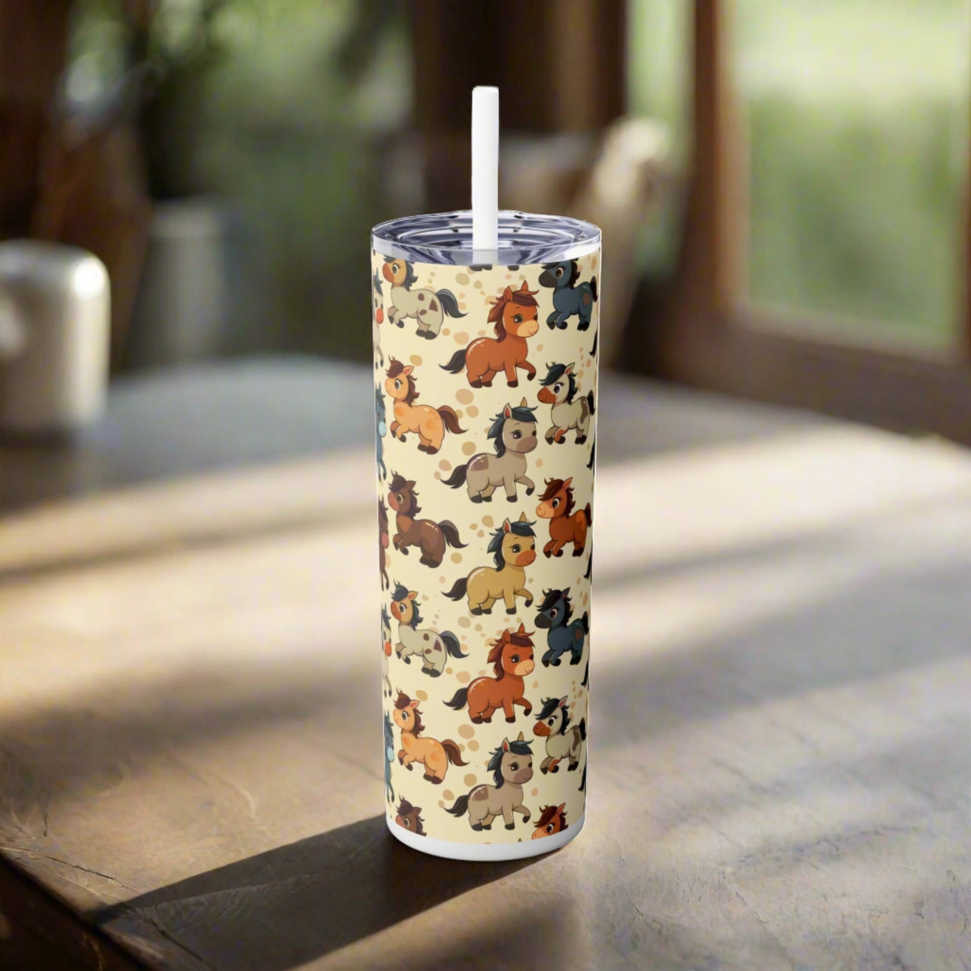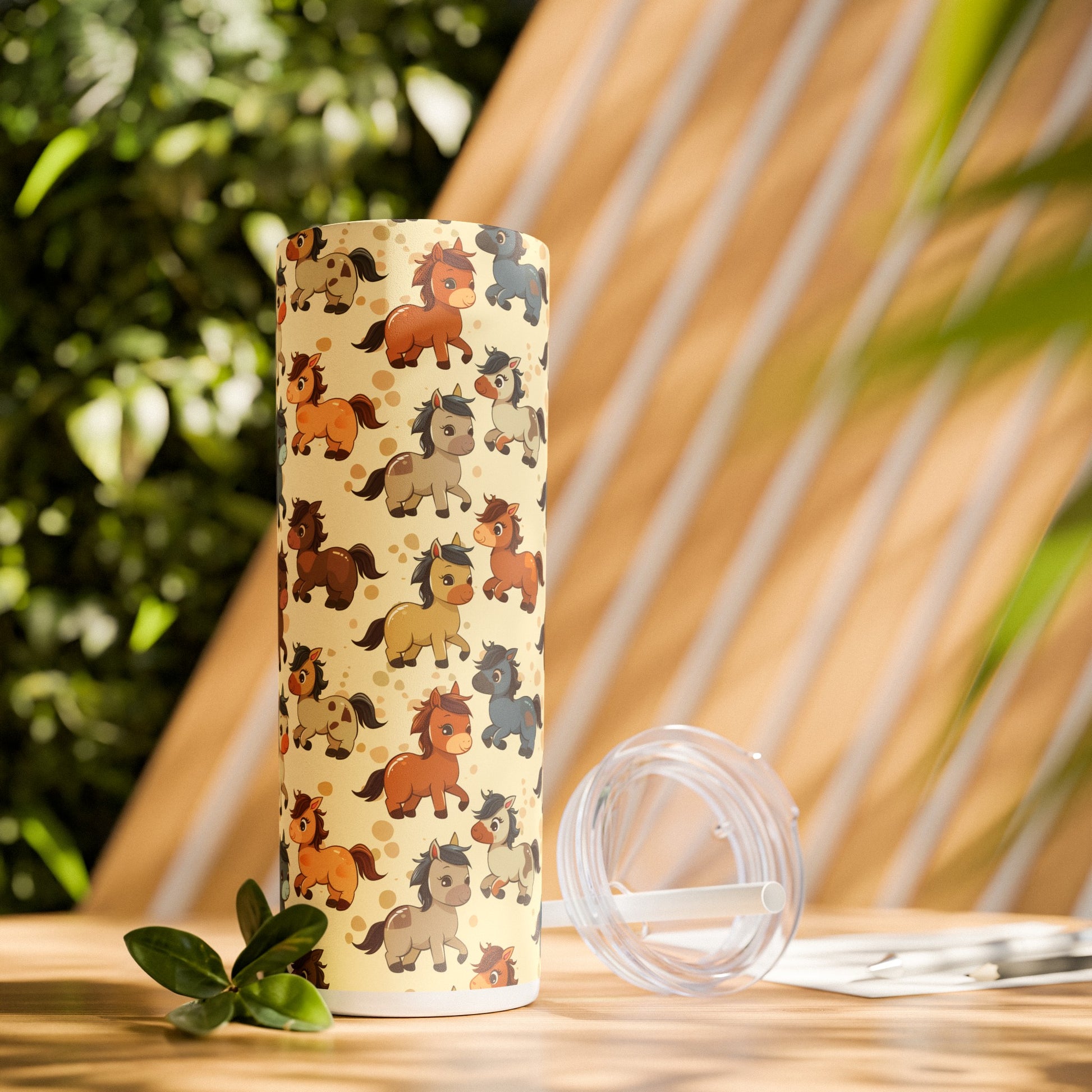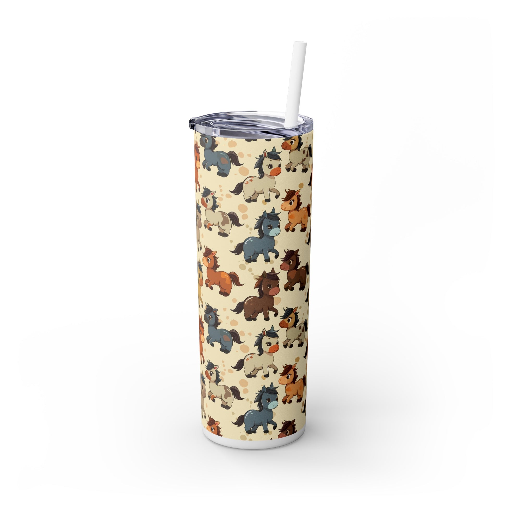 - Charming and Durable: Showcased in a radiant glossy finish, this tumbler is built to last. The playful pattern of baby horses adds a heartwarming touch, making it a captivating accessory for any outing.