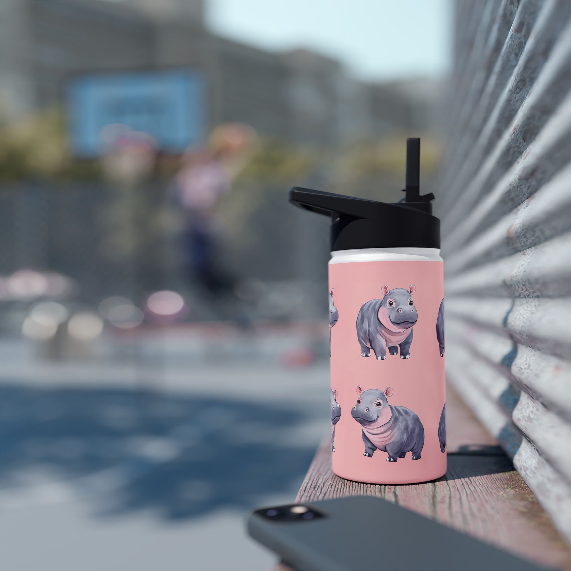 Insulated Water Bottle, 12oz, Cute Baby Pygmy Hippo - Double Walled Stainless Steel, Keeps Drinks Hot or Cold