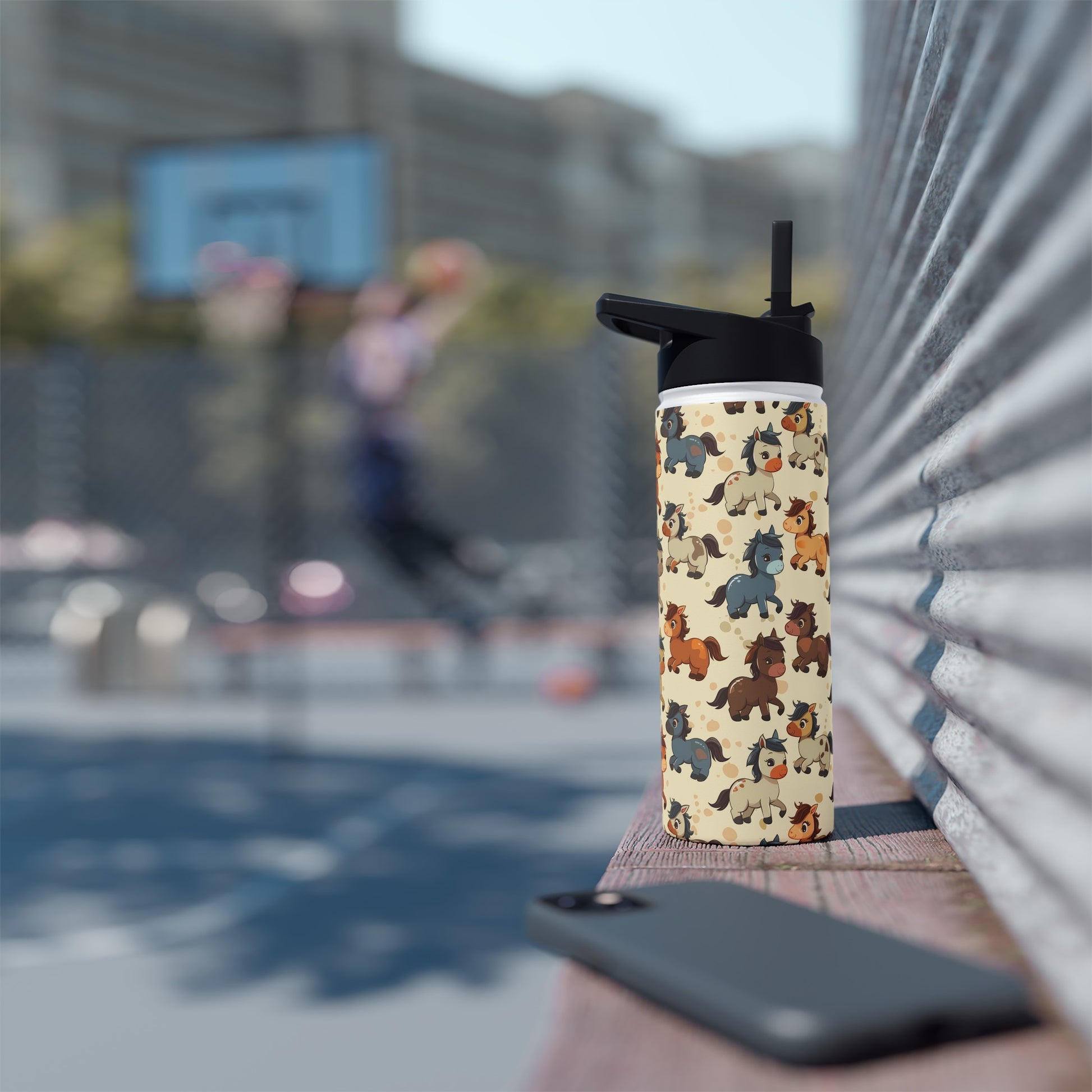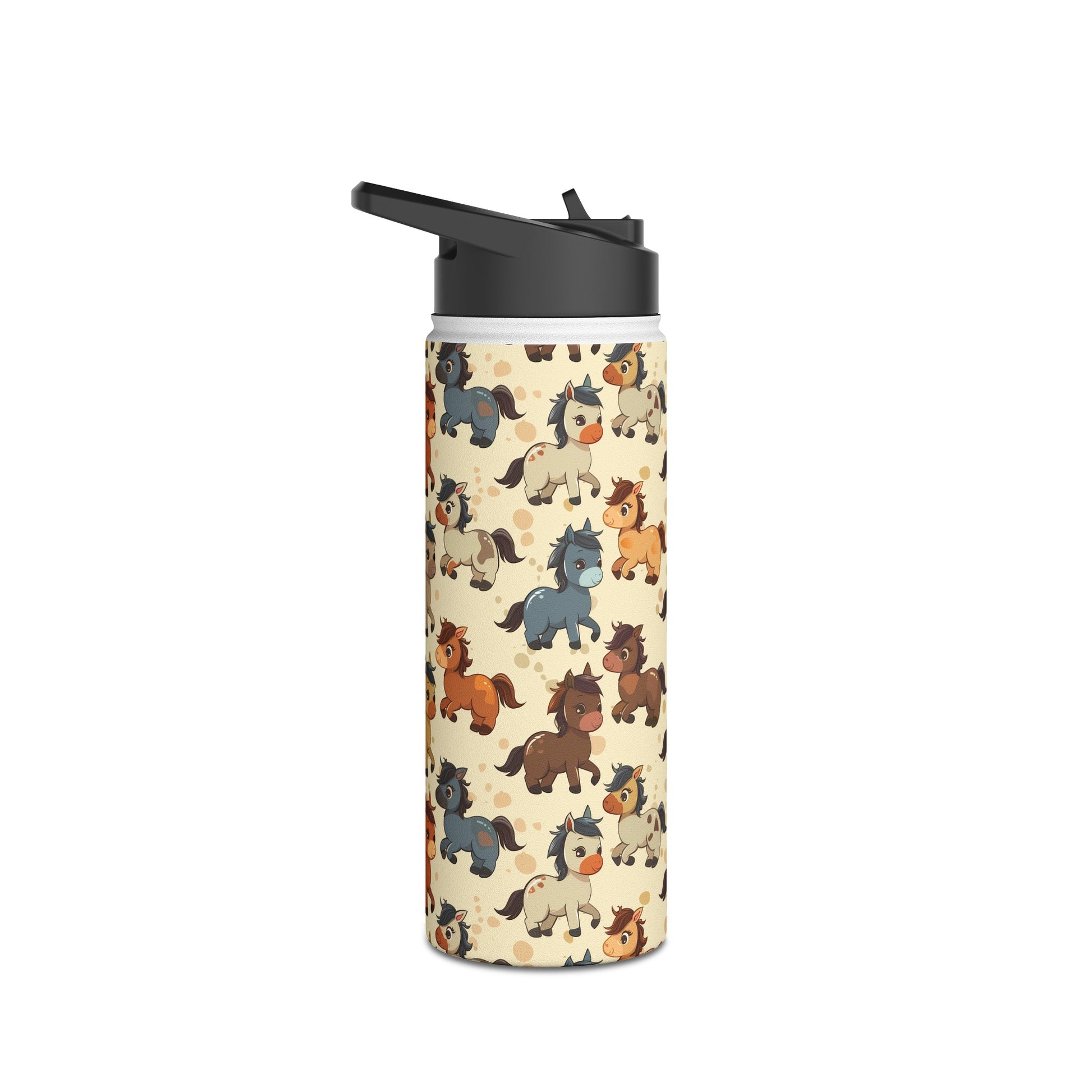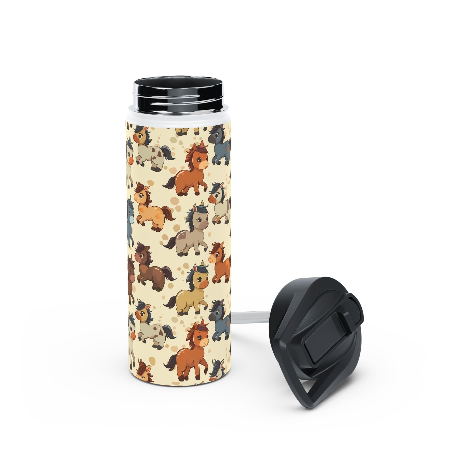 Quench your thirst in style with our adorable Cute Baby Horses Stainless Steel Water Bottle! This 18 oz marvel isn't just about looks – it's packed with features that make it your new favorite hydration companion, perfect for adults or as a sippy cup for kids.