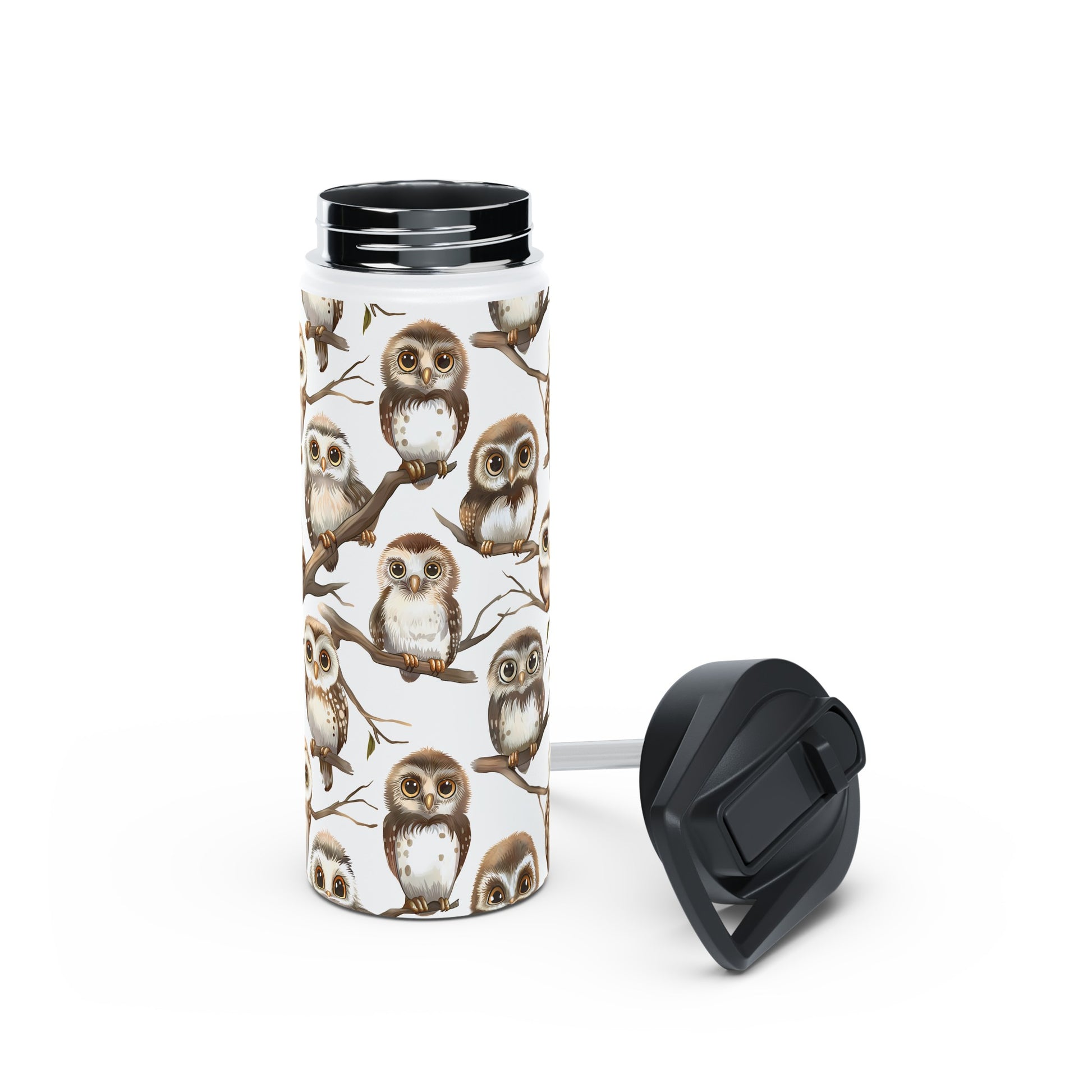 Insulated Water Bottle Thermos, 18oz, Cute Owlets - Double Walled Stainless Steel, Keeps Drinks Hot or Cold