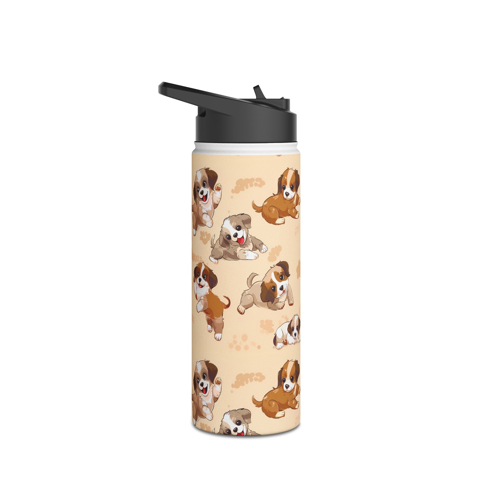 Insulated Water Bottle Thermos, 18oz, Cute Puppy Dogs - Double Walled Stainless Steel, Keeps Drinks Hot or Cold