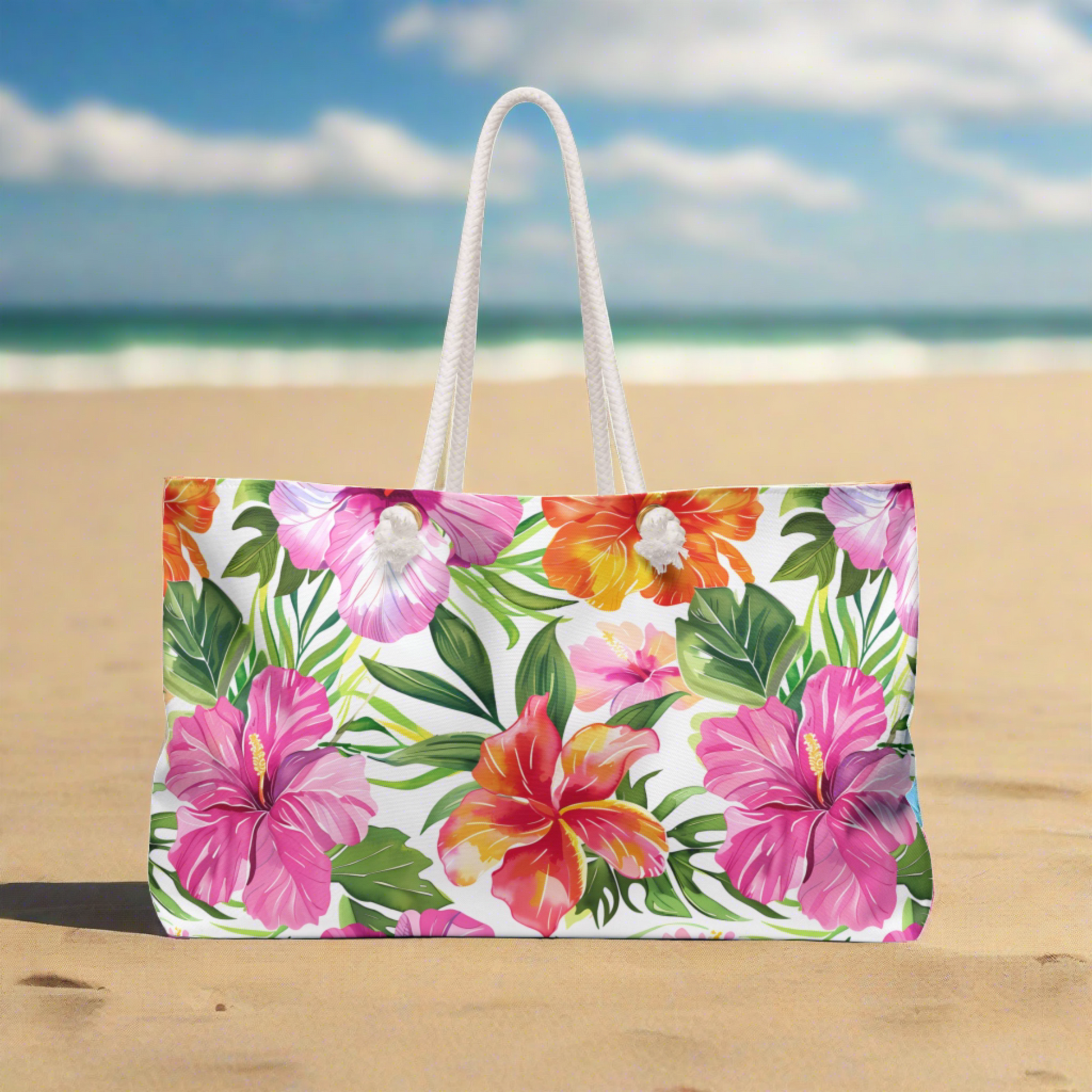 Deluxe Tropics Tote & Beach Bag with Vibrant Hibiscus Design (24" × 13" x 5.5")