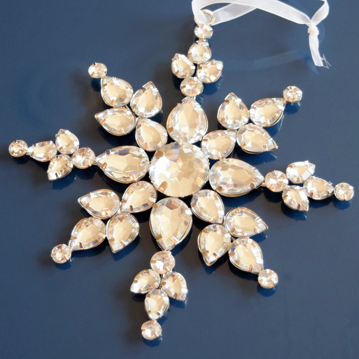 Set of 3 handcrafted jeweled rhinestone ornaments add an elegant touch to your Christmas tree. Delicate snowflake design & bejeweled rhinestones sparkle & shine. Ornaments are made of high-quality acrylic for durability & longevity. Hang on tree or decorate wreaths, garlands & more. An exquisite gift or to enhance your holiday decorations. Add beauty & sparkle to winter holiday celebrations.