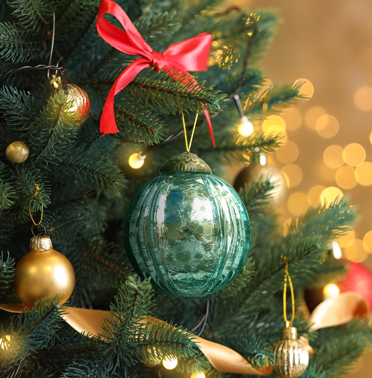 This distinctive set of four Mercury Glass Ornaments, crafted by artisans, is an exquisite addition to any festive setting. These light blue ornamental balls, hand-crafted to create a unique design and durable, lightweight form, boast a classic, timeless look with their antiqued metallic finish. No matter the color scheme, the Gold Ball and Silver Ball Ornaments match perfectly, while the Red Ball and Blue Ball Ornaments offer a mix-and-match option for vibrant holiday decor. Additionally, these opulent, luminous ornaments, with their captivating sparkle and shine, can be used in various ways: decorate your Christmas tree, adorn small gifts, suspend from a mantle, embellish a DIY wreath or garland, and anywhere else one can imagine. Whether for home decor or festive gifts, these exquisite ornaments elevate any occasion with their regal appearance and break-resistant quality.