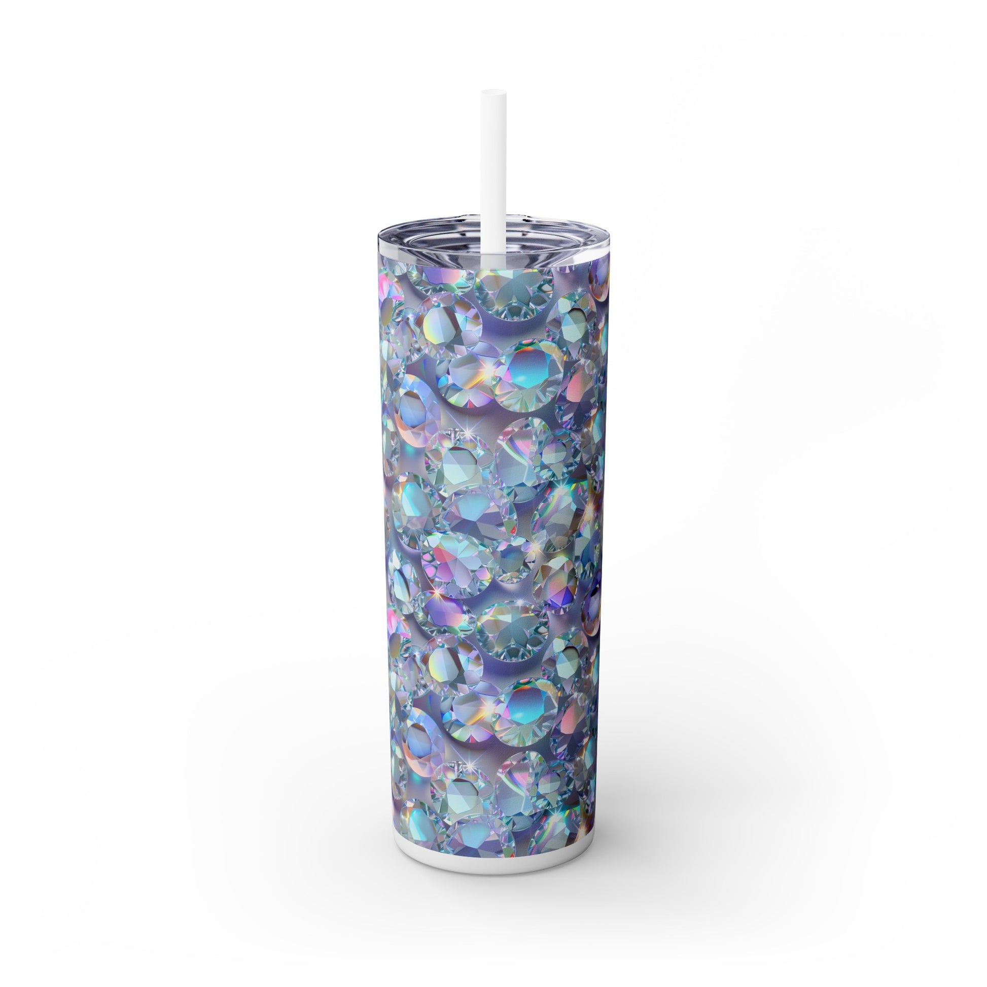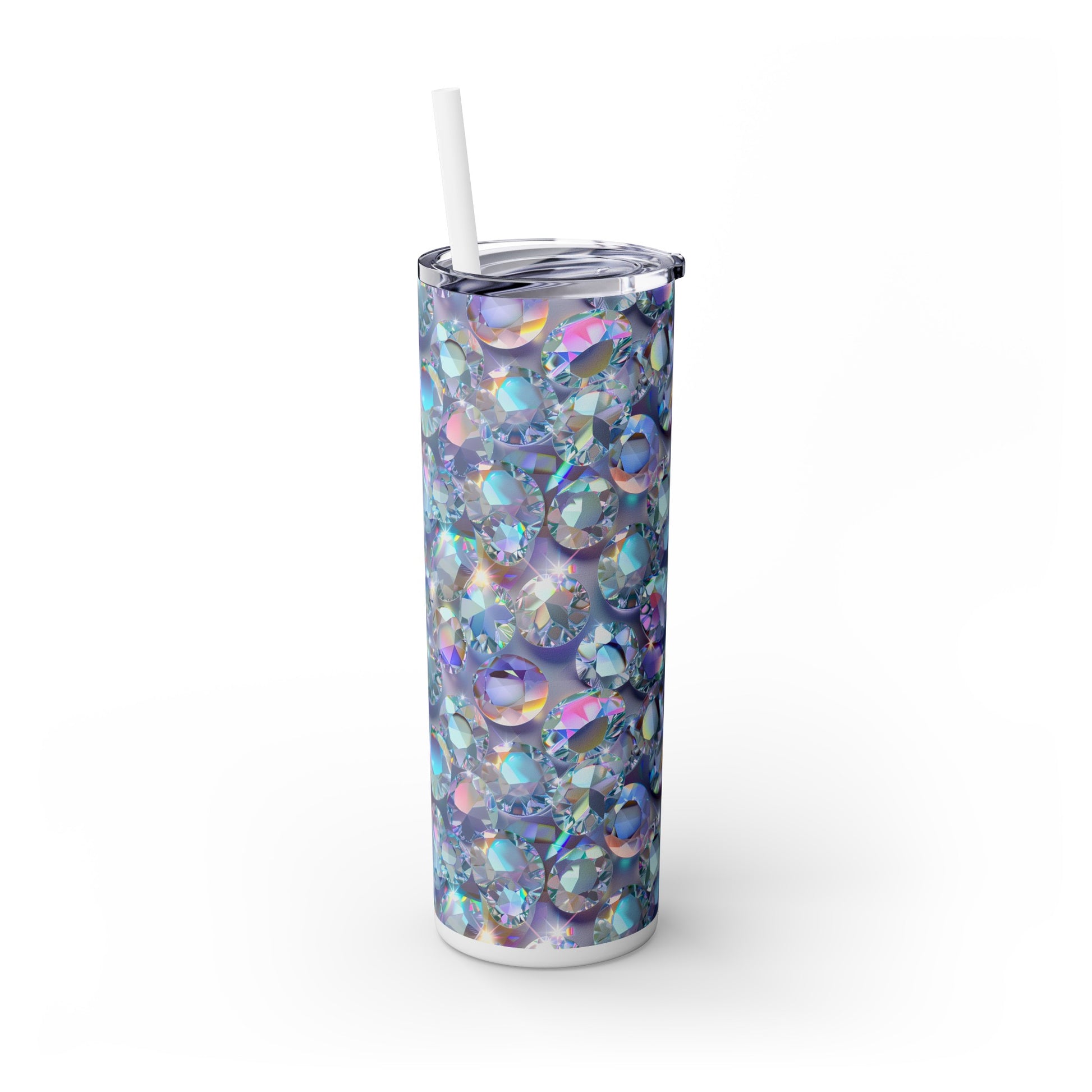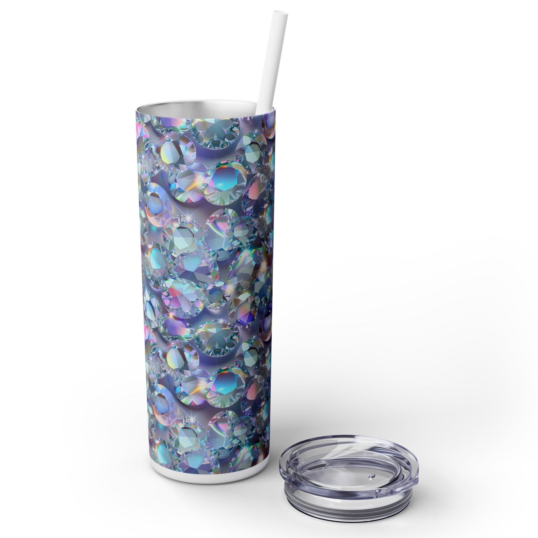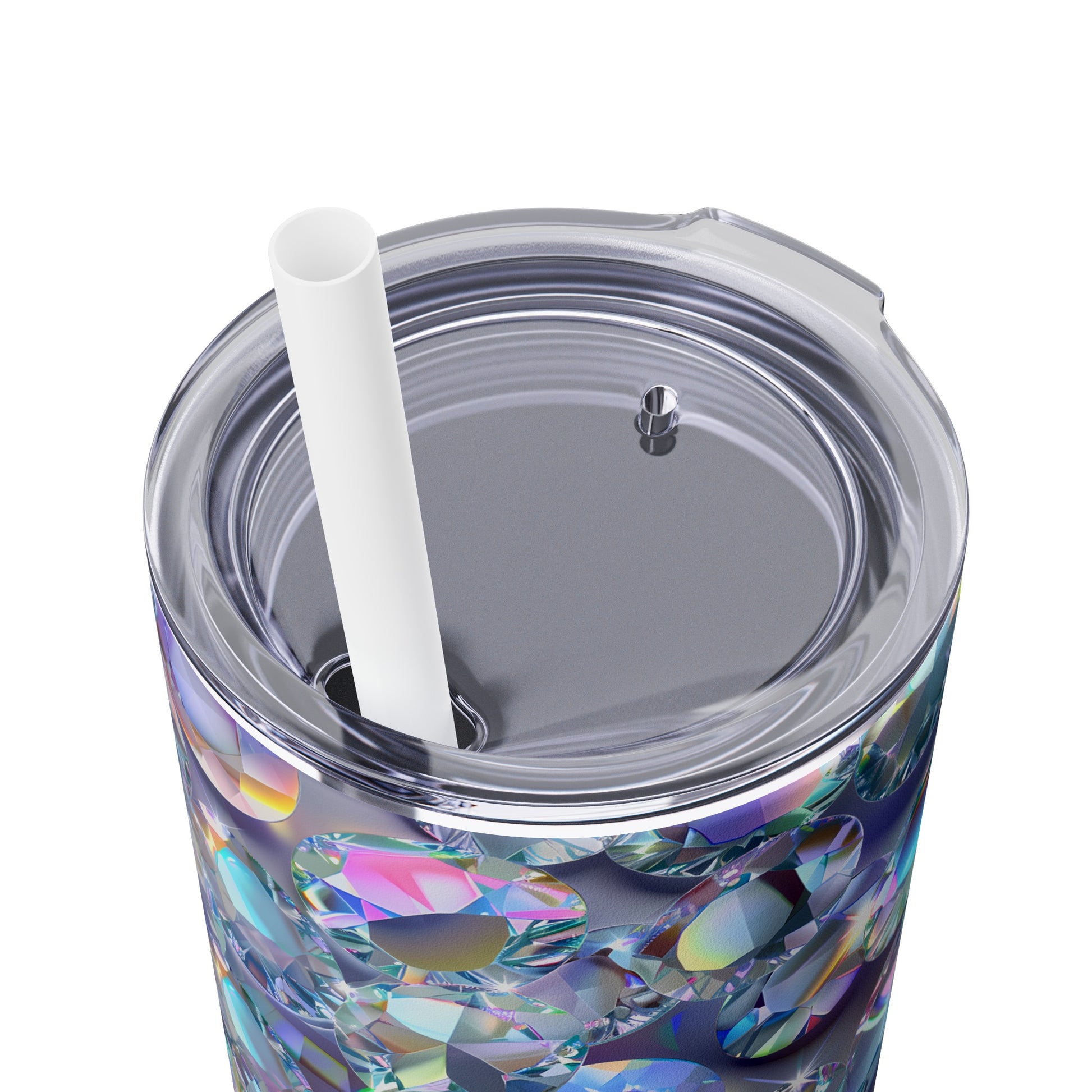 Stainless Steel Tumbler with Lid & Straw, 20 oz, Diamond Gem Bling - Double-walled, Keeps Drinks Hot or Cold