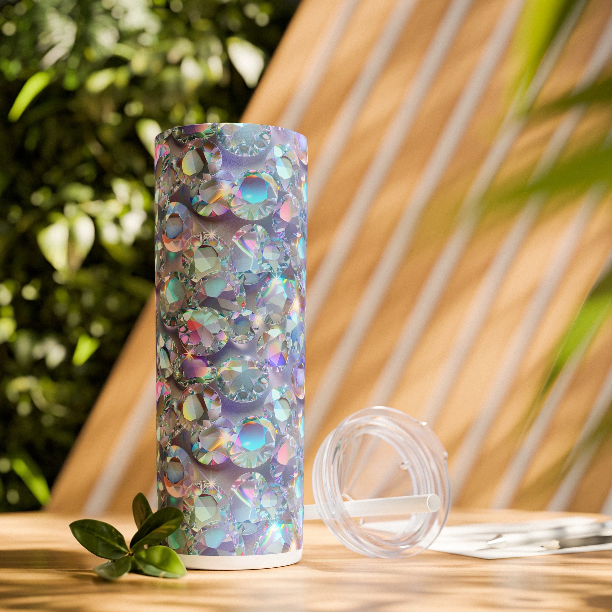 Perfect for glamorous gatherings, daily use, or simply adding a bit of sparkle to your everyday routine, the Sparkling Iridescent Diamonds 20 oz Tumbler isn’t just a beverage holder—it's a statement of luxury and functionality. To keep it looking magnificent, hand washing is recommended. Add a touch of sparkle to your day with every sip!
