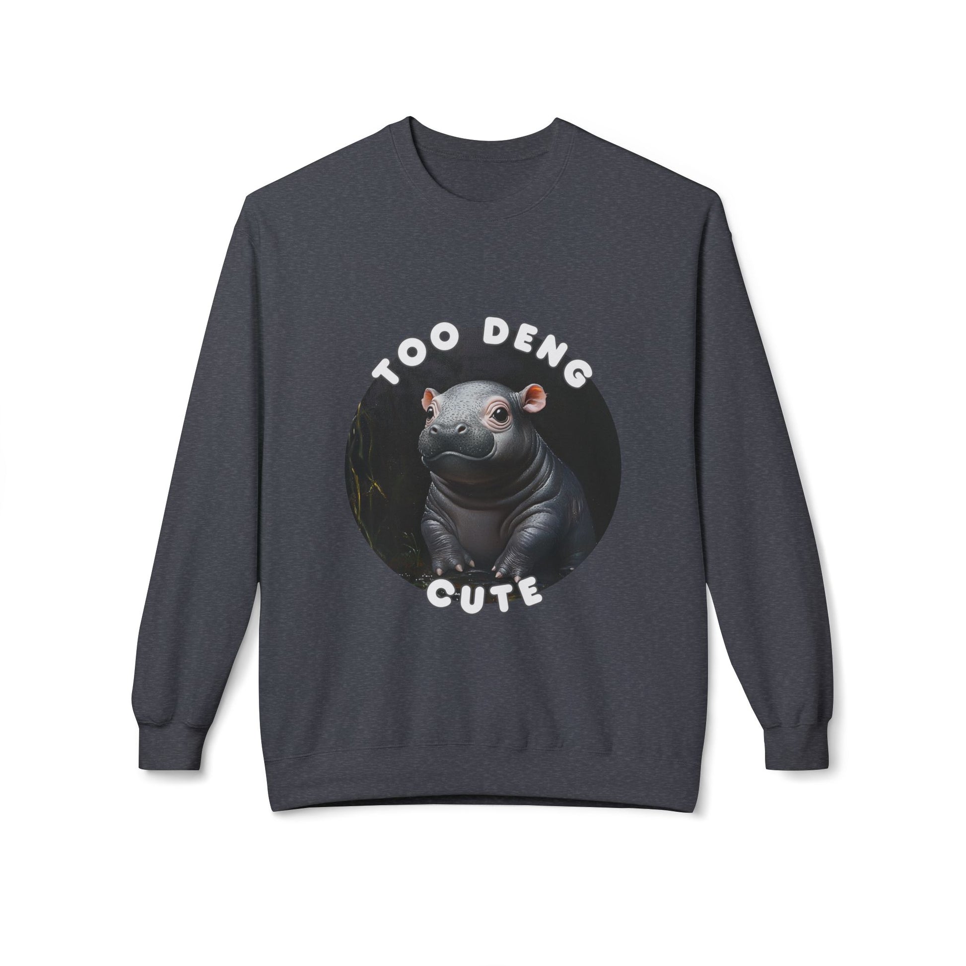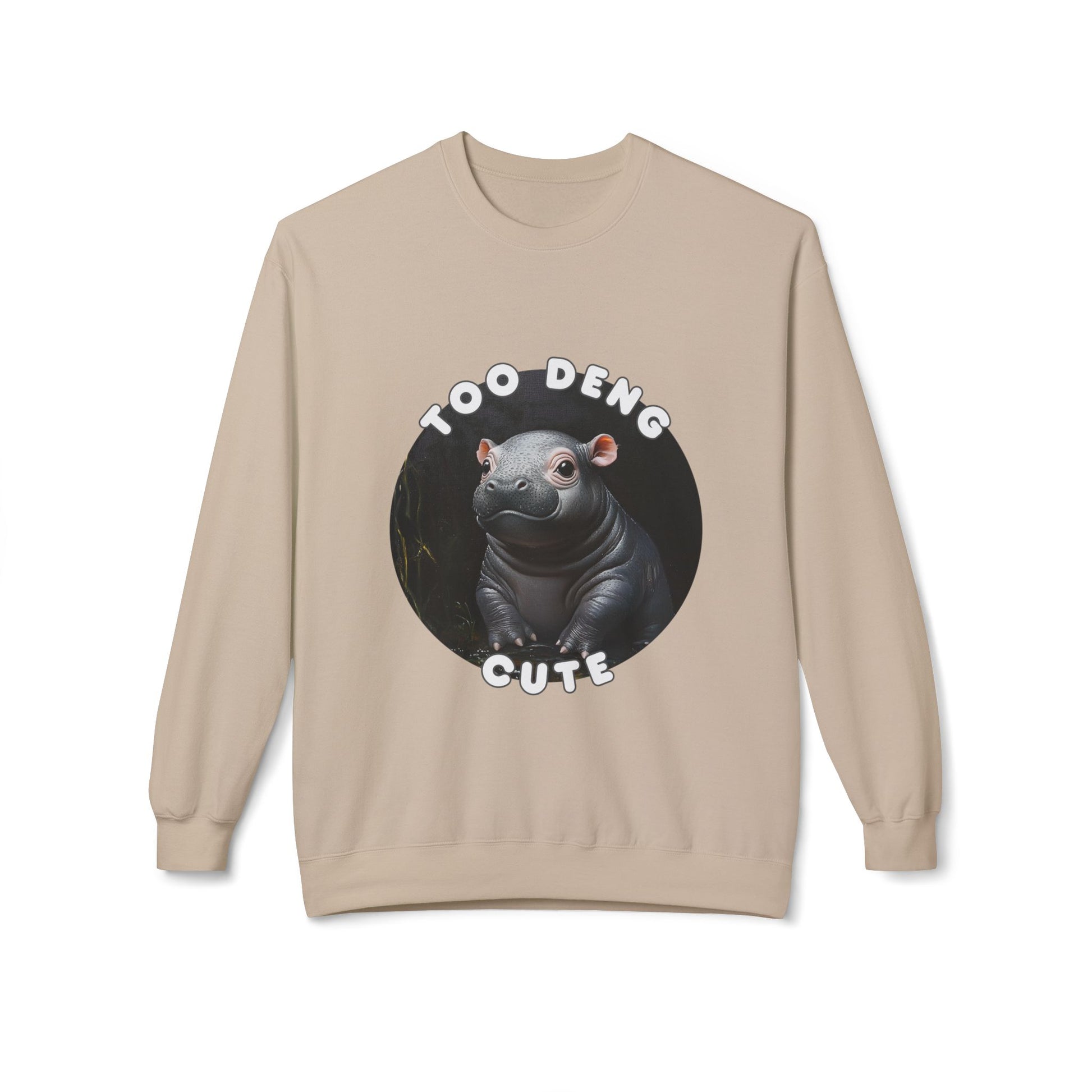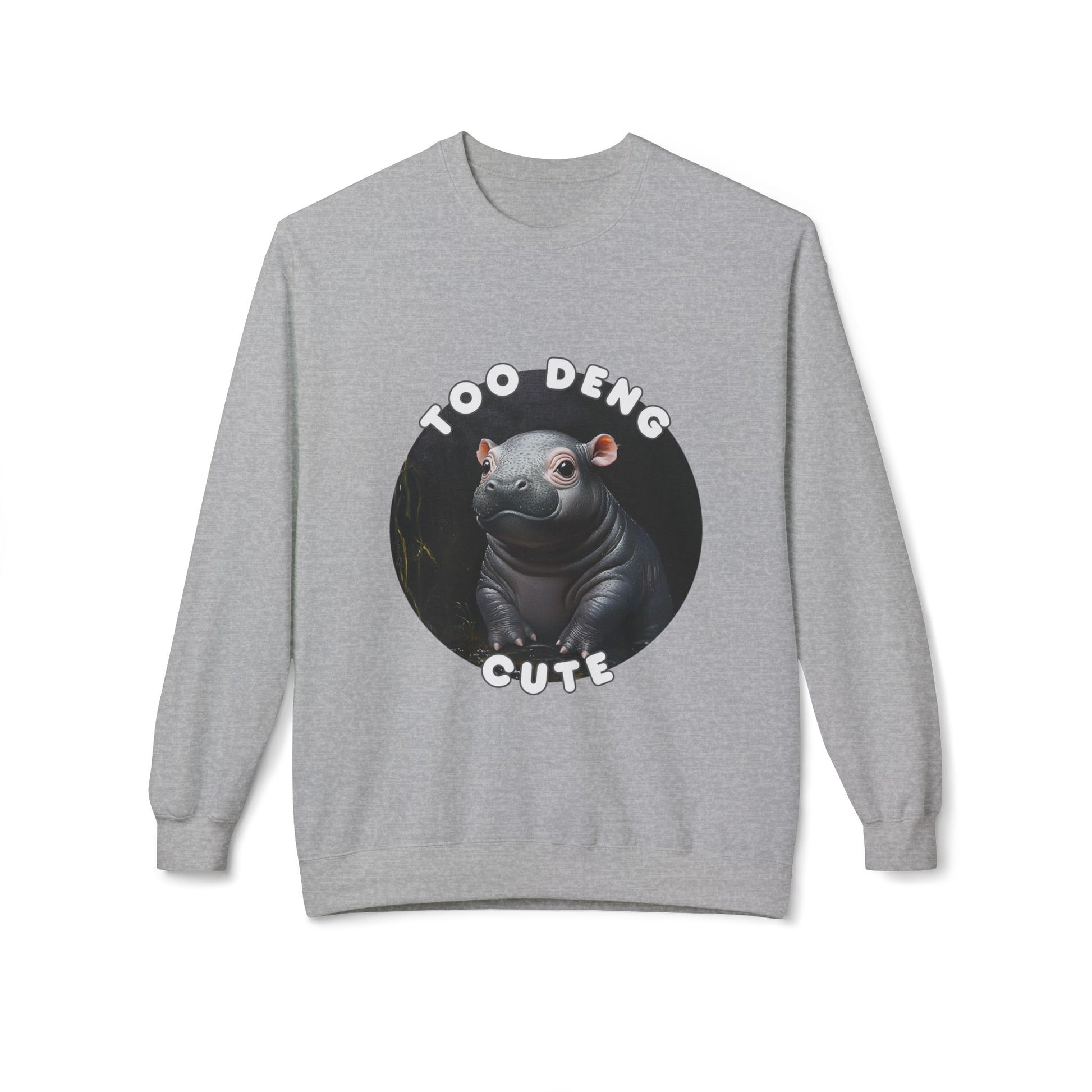 Unisex Fleece Crewneck Sweatshirt - Too Deng Cute Moo Deng Hippo, Cozy Cotton Blend, Classic Relaxed Fit
