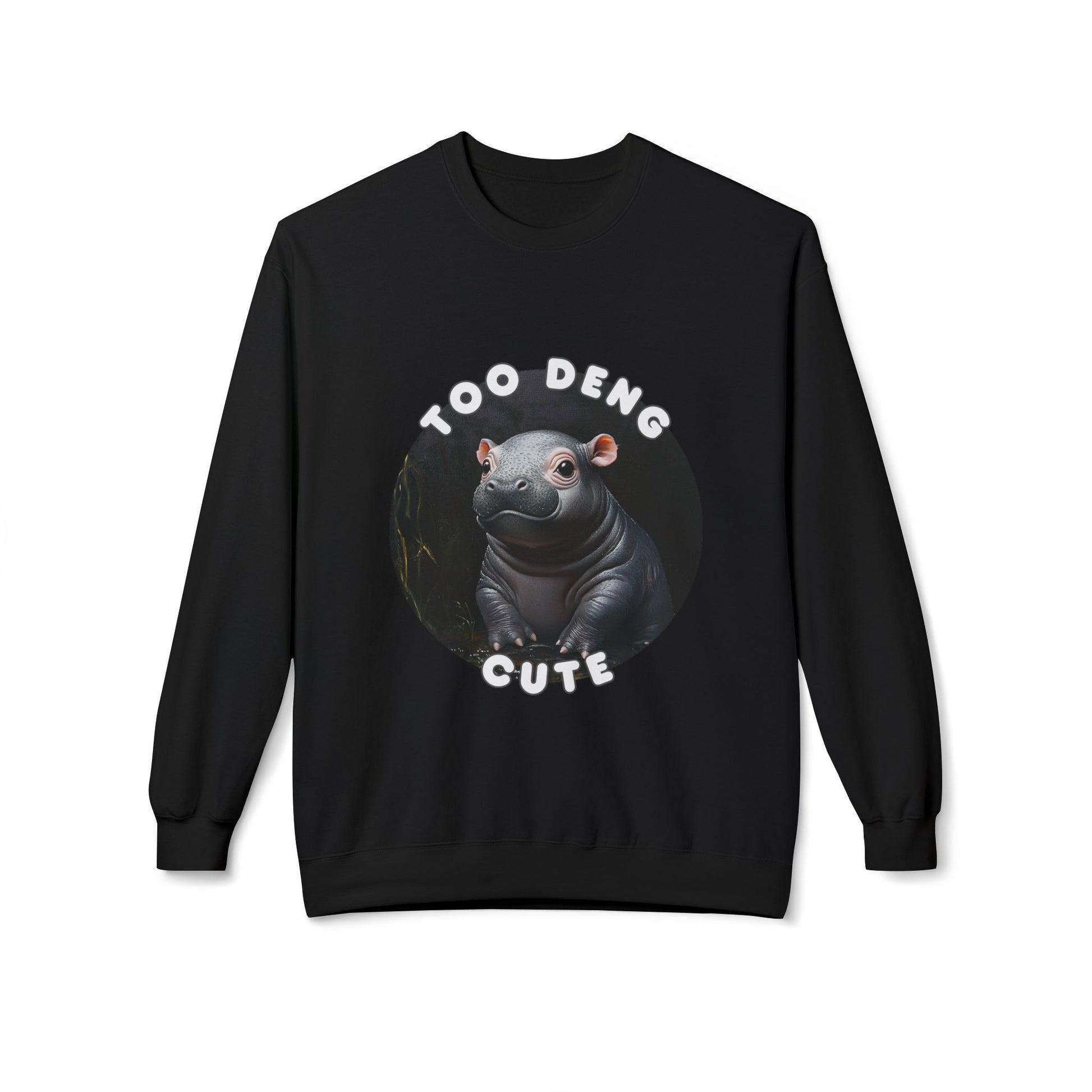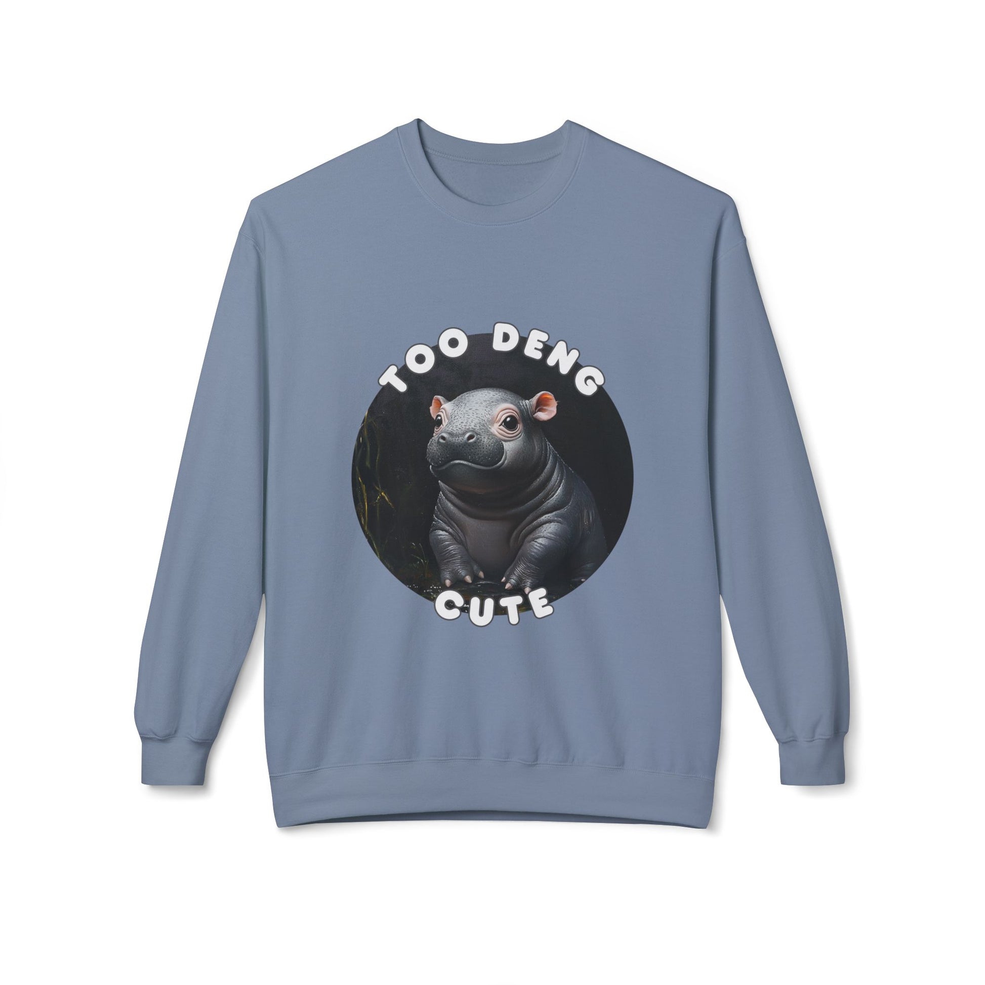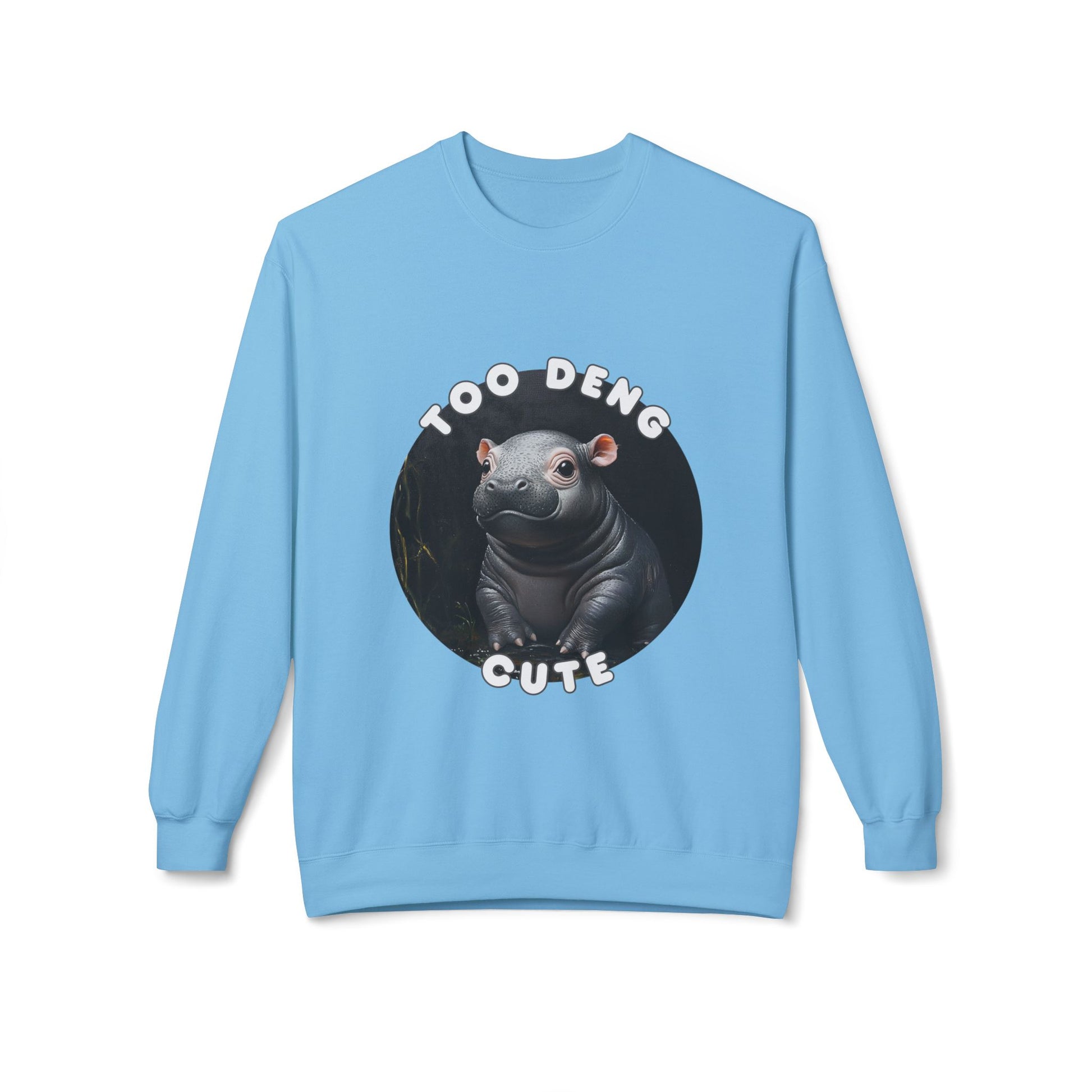 Unisex Fleece Crewneck Sweatshirt - Too Deng Cute Moo Deng Hippo, Cozy Cotton Blend, Classic Relaxed Fit