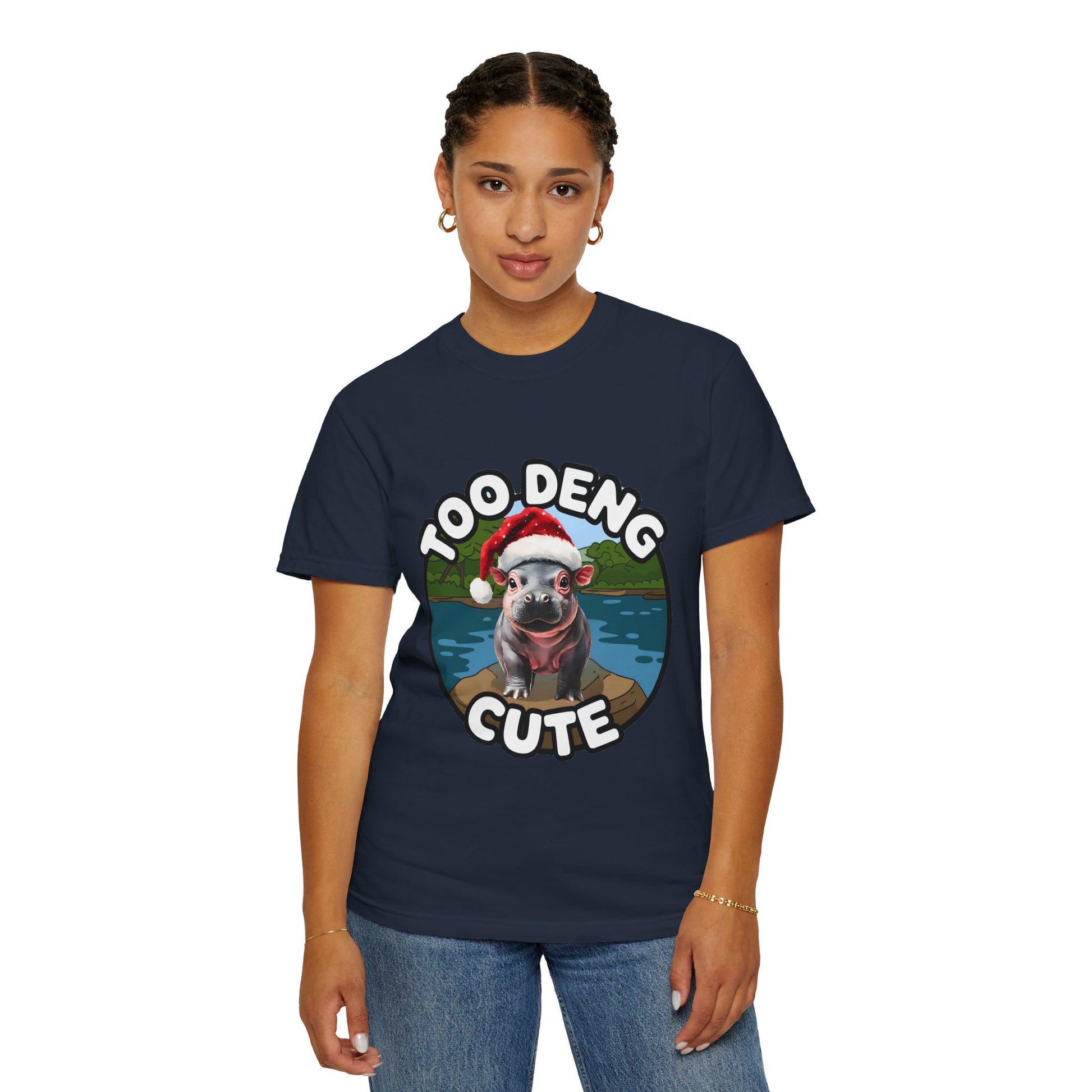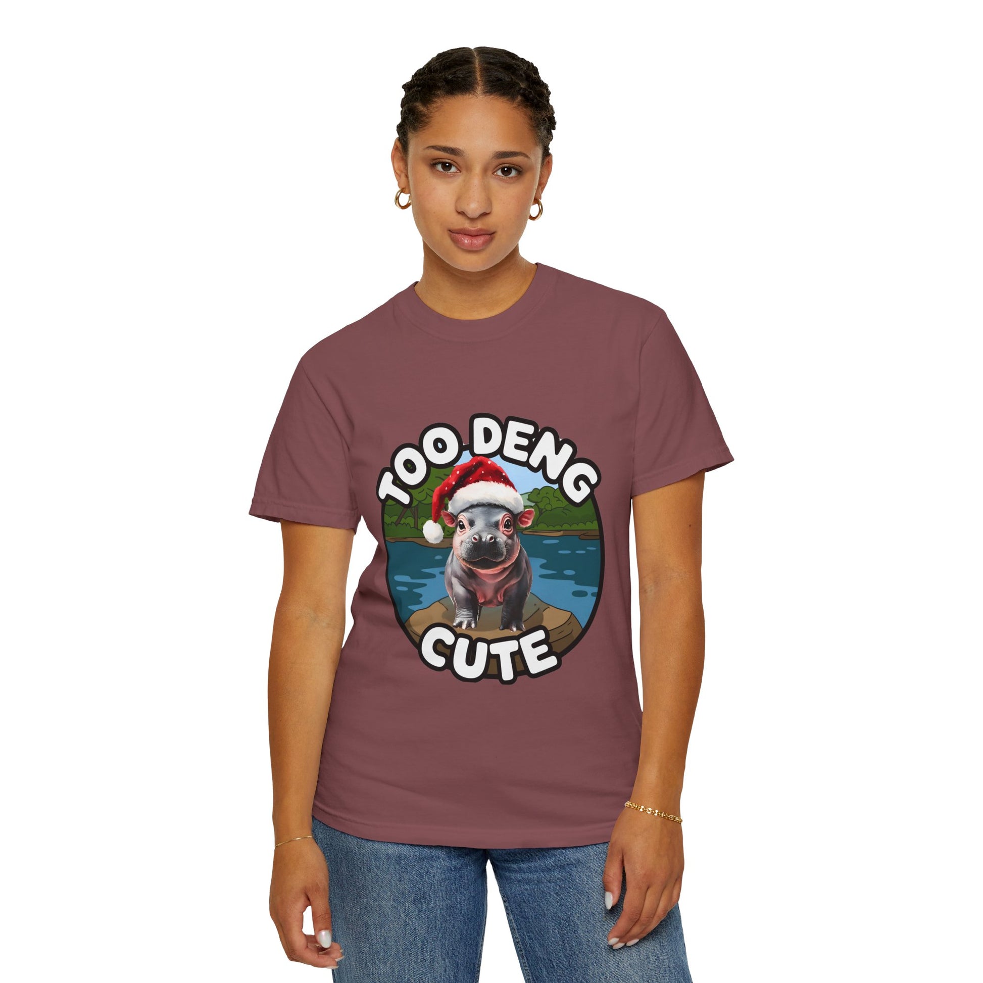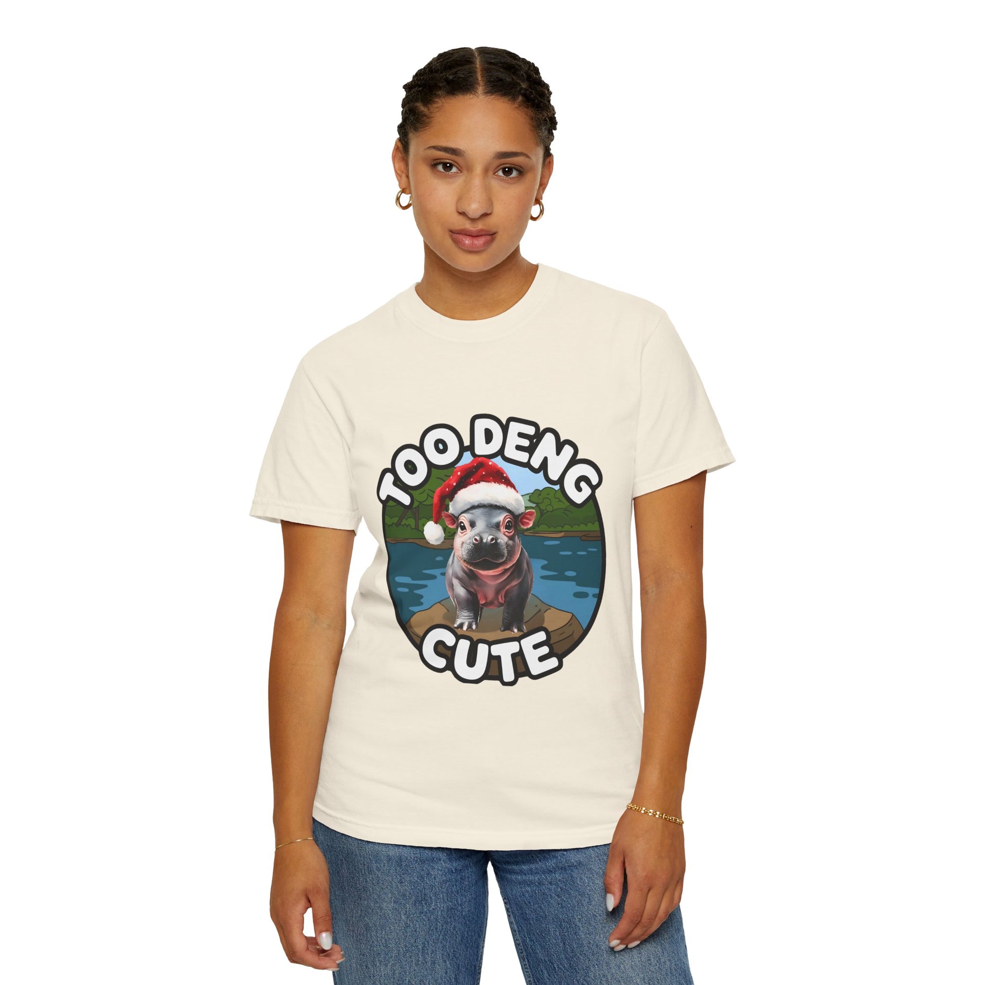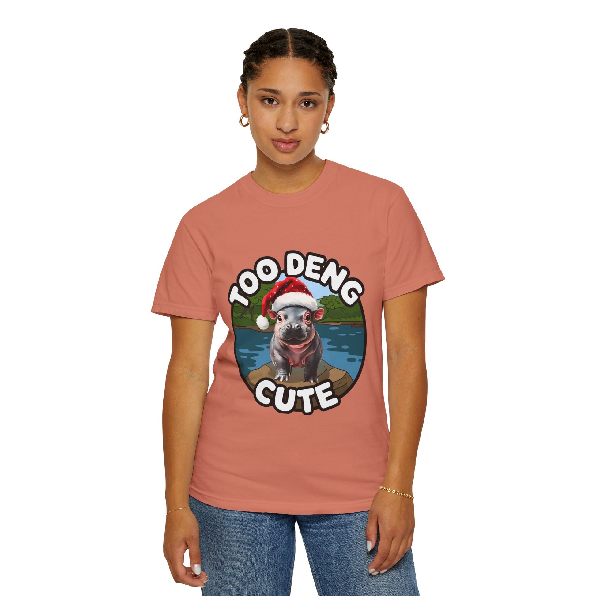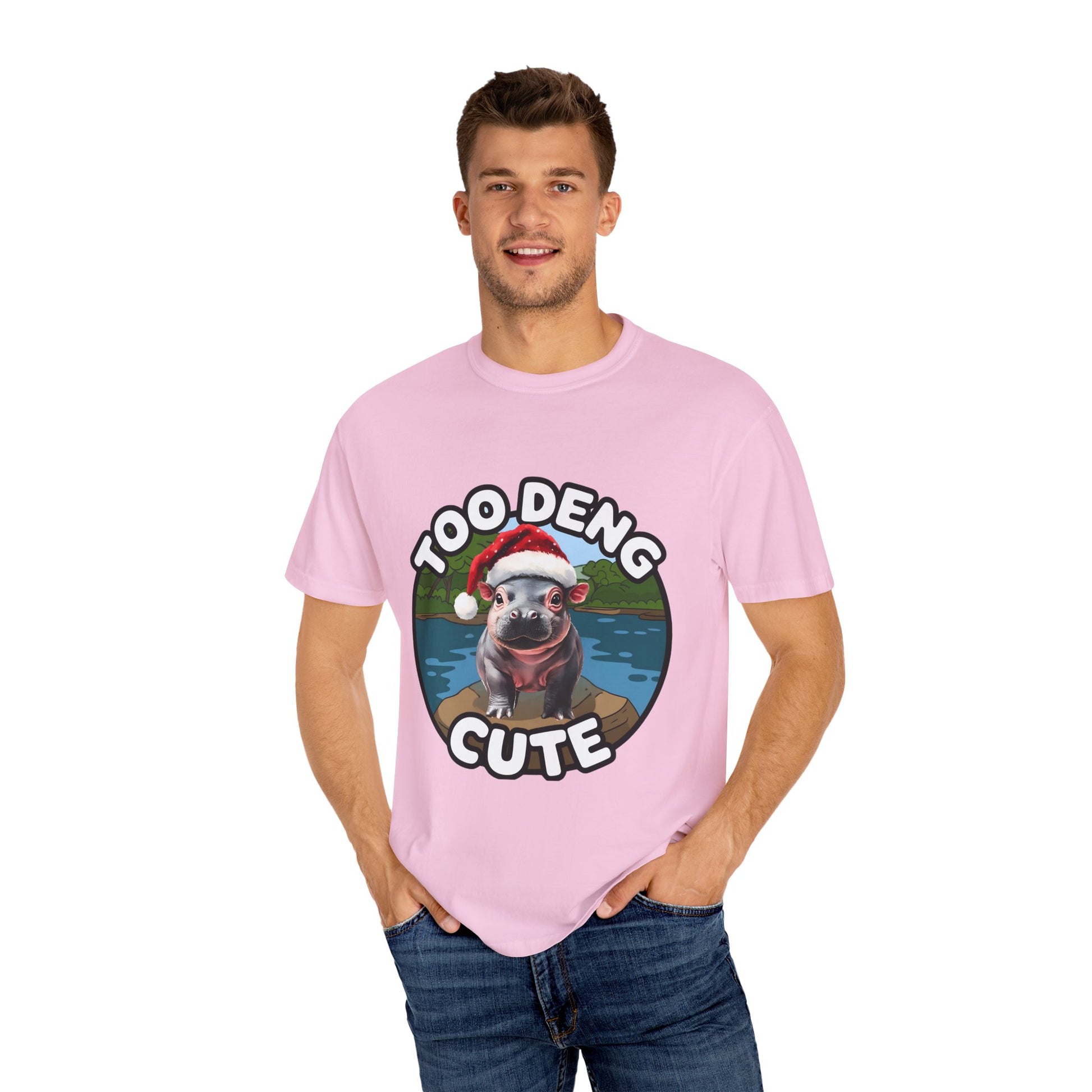 Unisex Garment-Dyed T-Shirt, Moo Deng the Cute Pygmy Hippo | Christmas Holiday Shirt