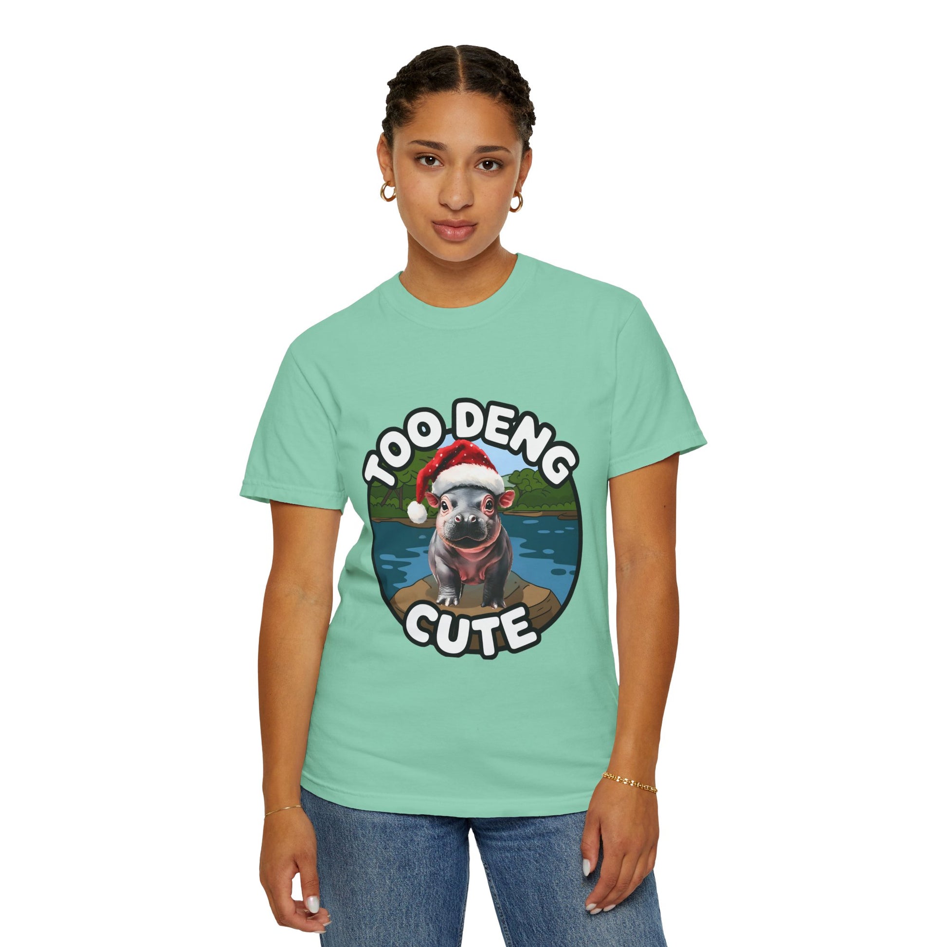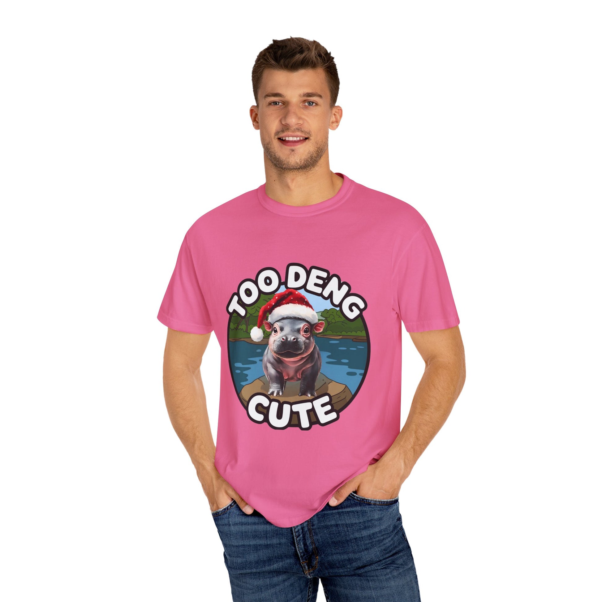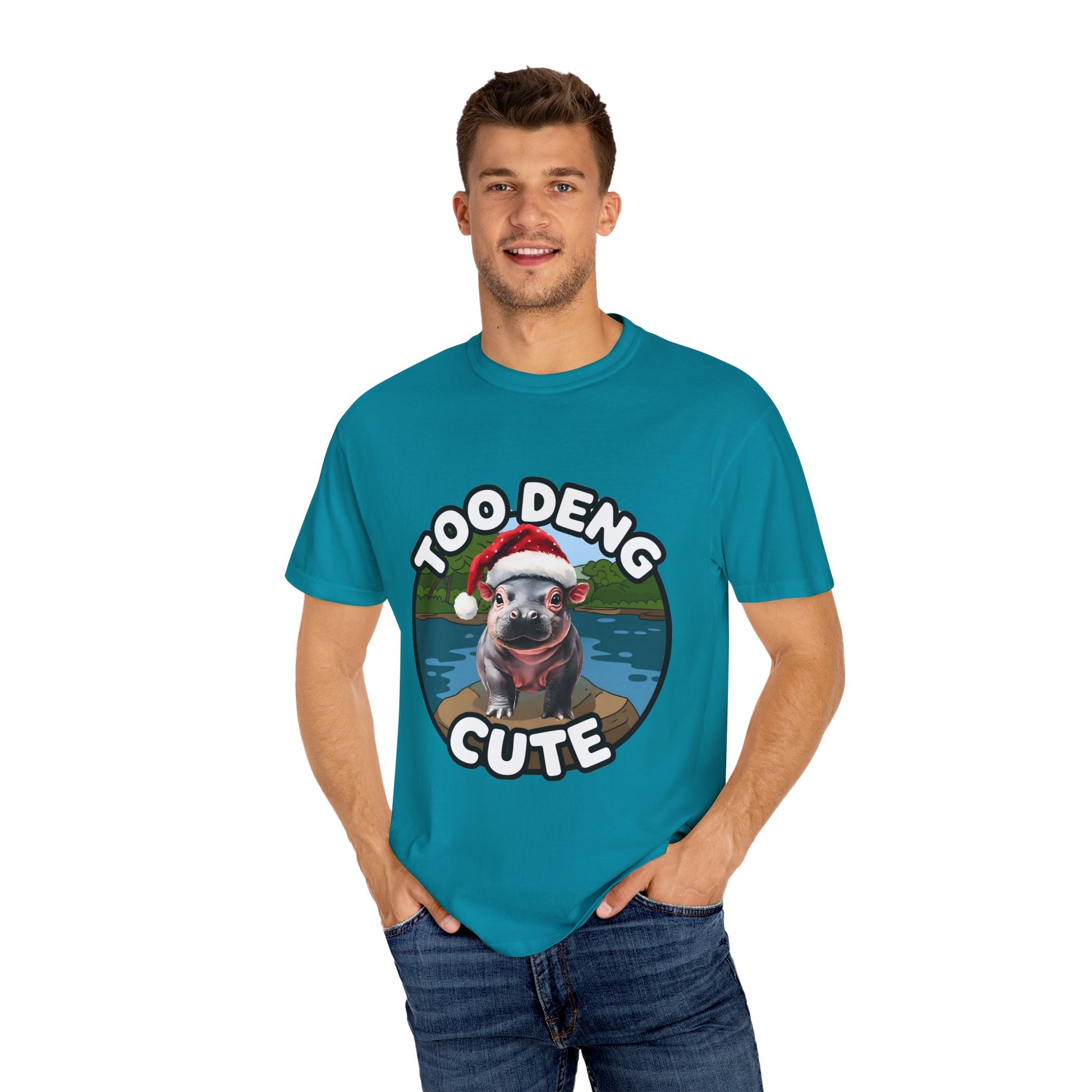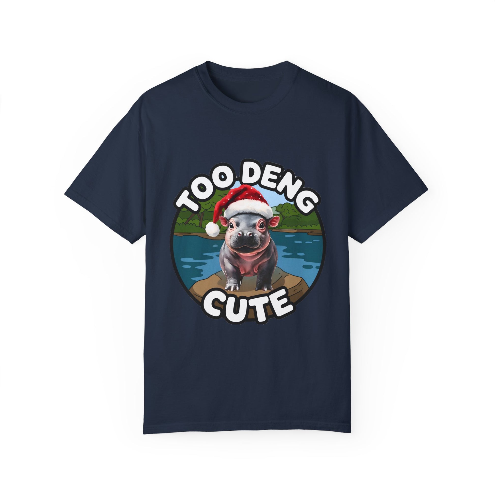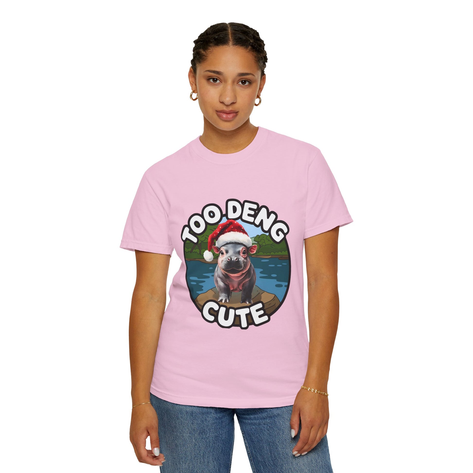 Unisex Garment-Dyed T-Shirt, Moo Deng the Cute Pygmy Hippo | Christmas Holiday Shirt