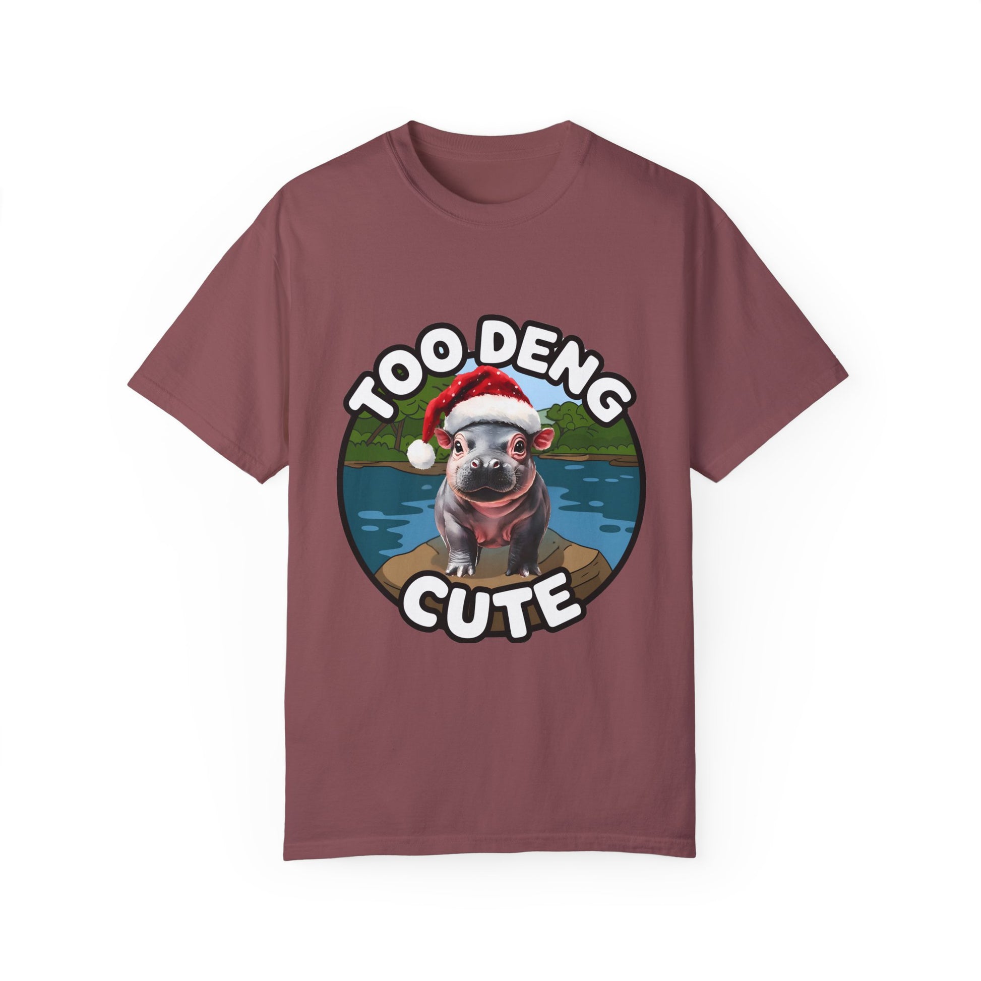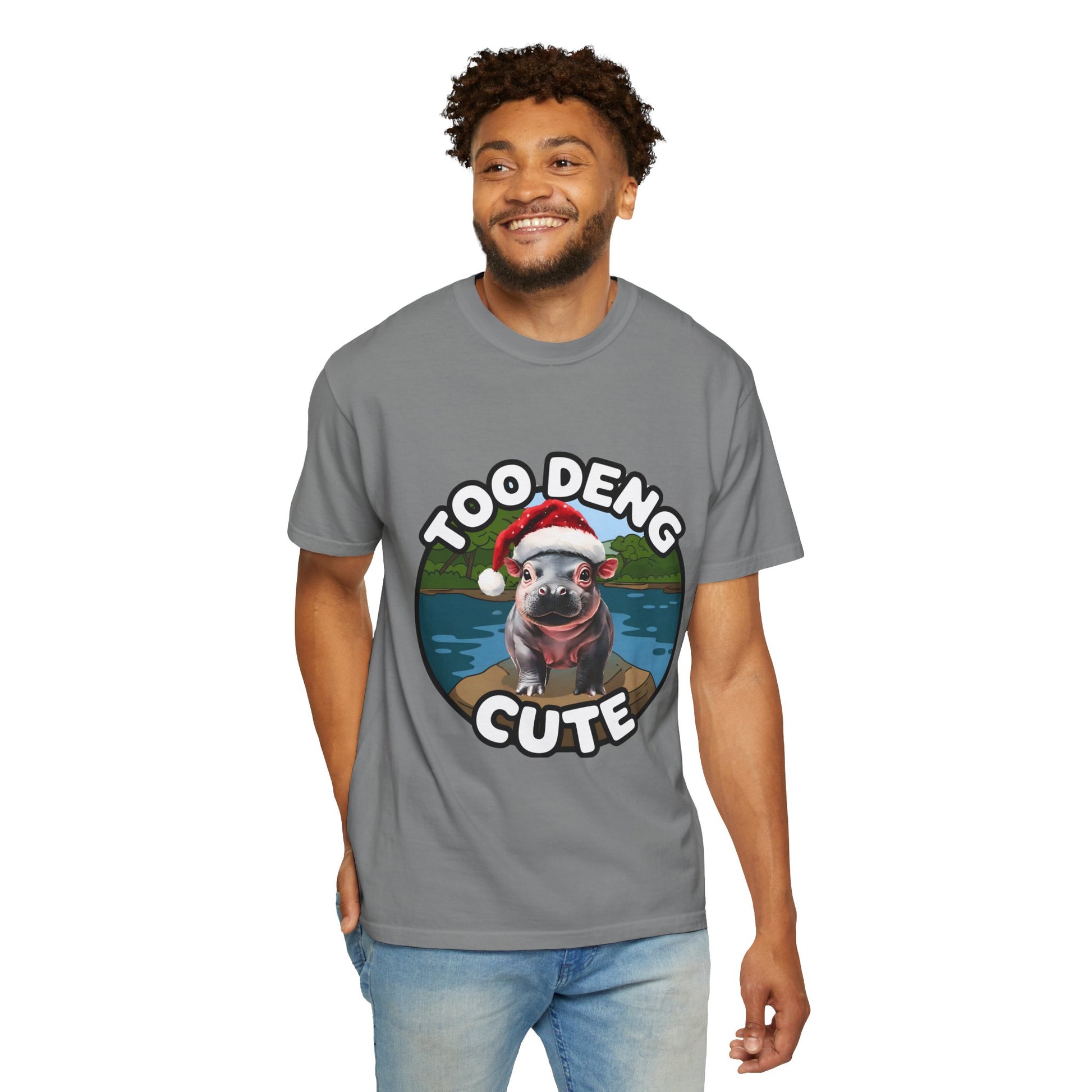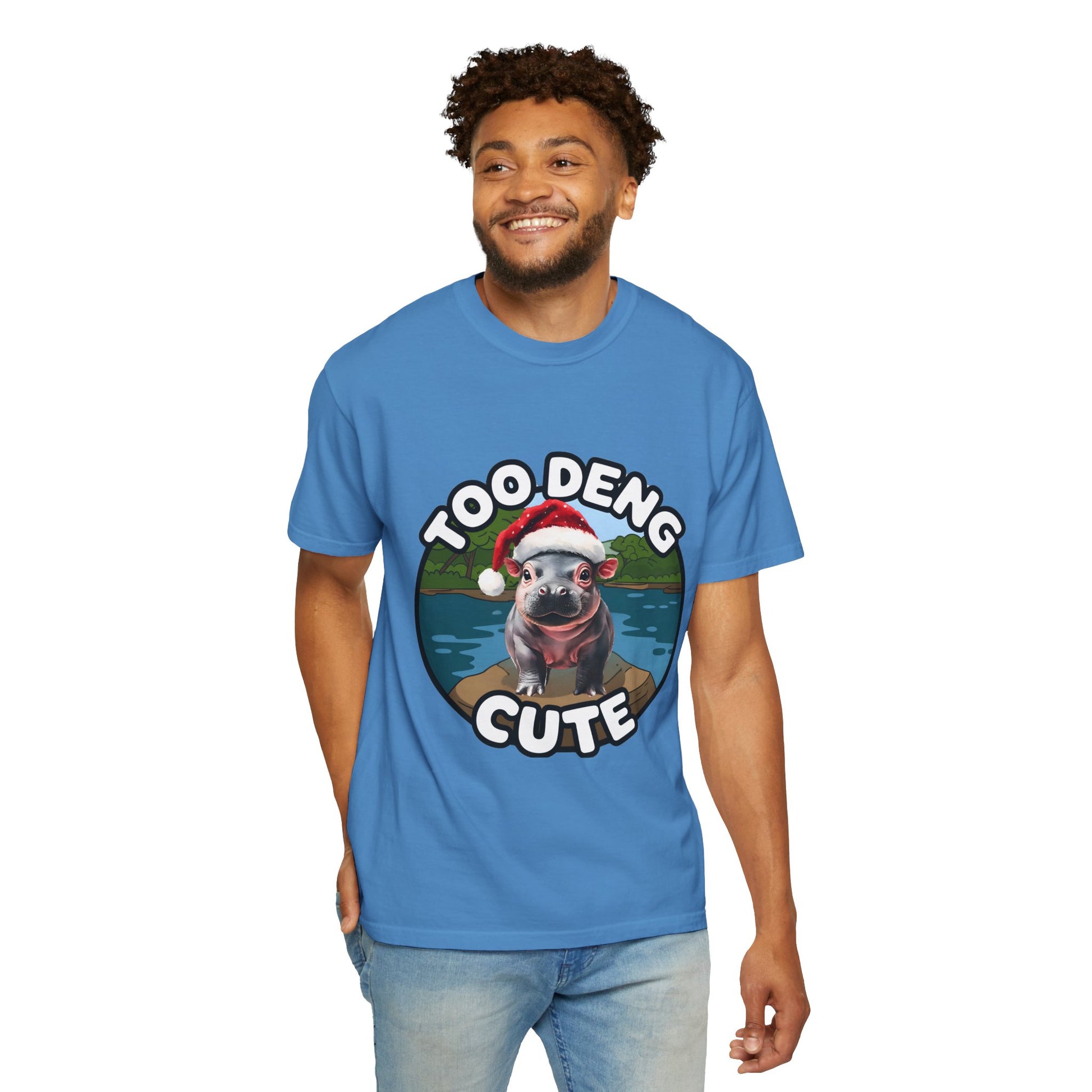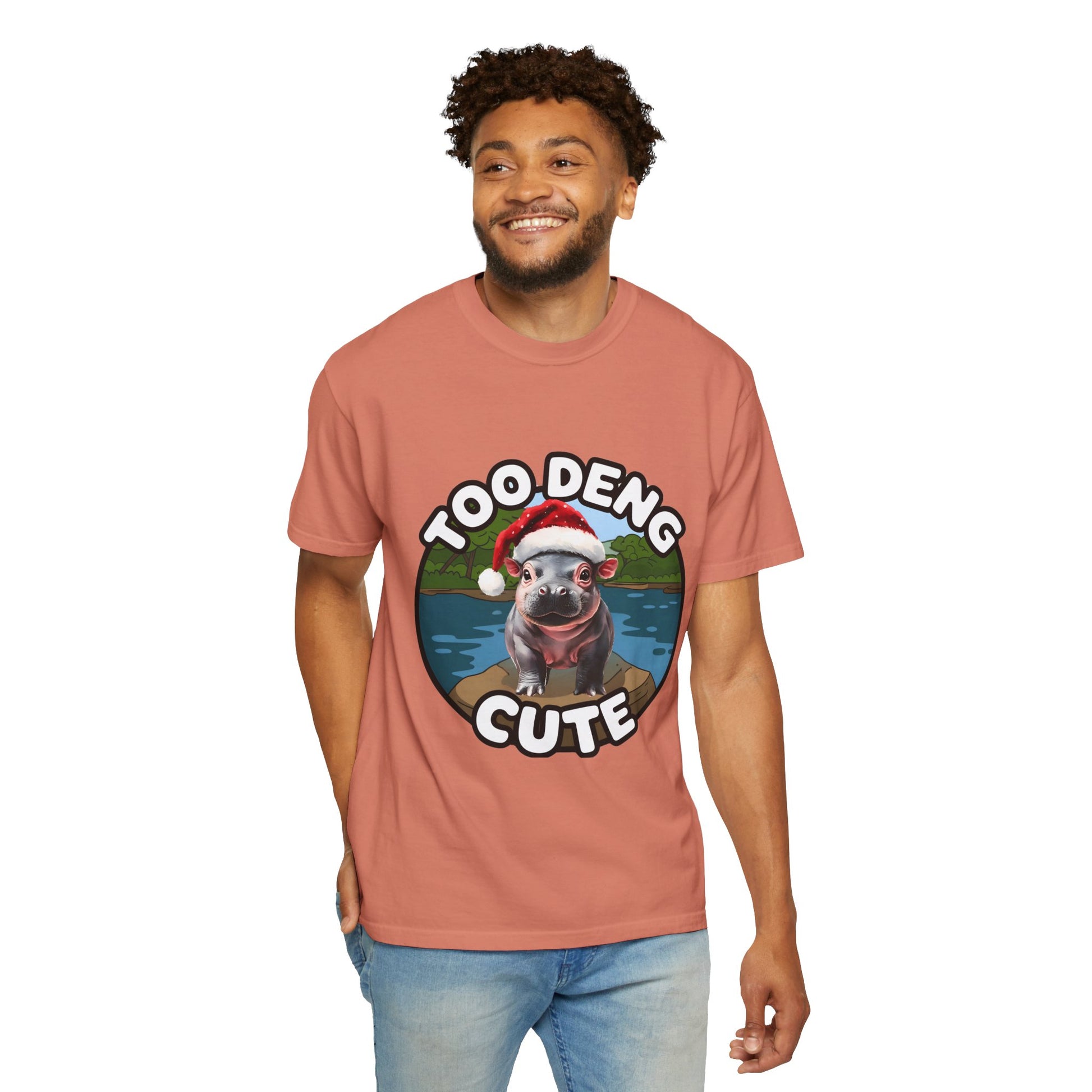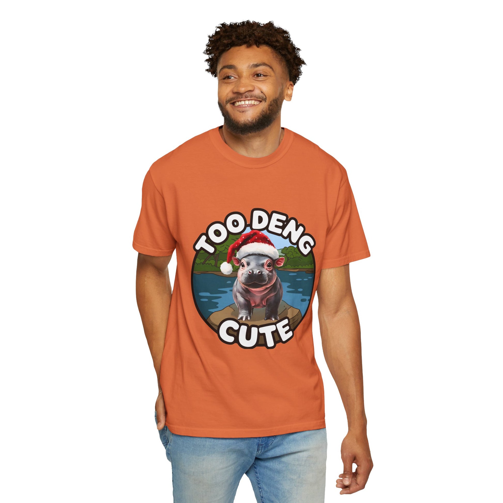 Unisex Garment-Dyed T-Shirt, Moo Deng the Cute Pygmy Hippo | Christmas Holiday Shirt