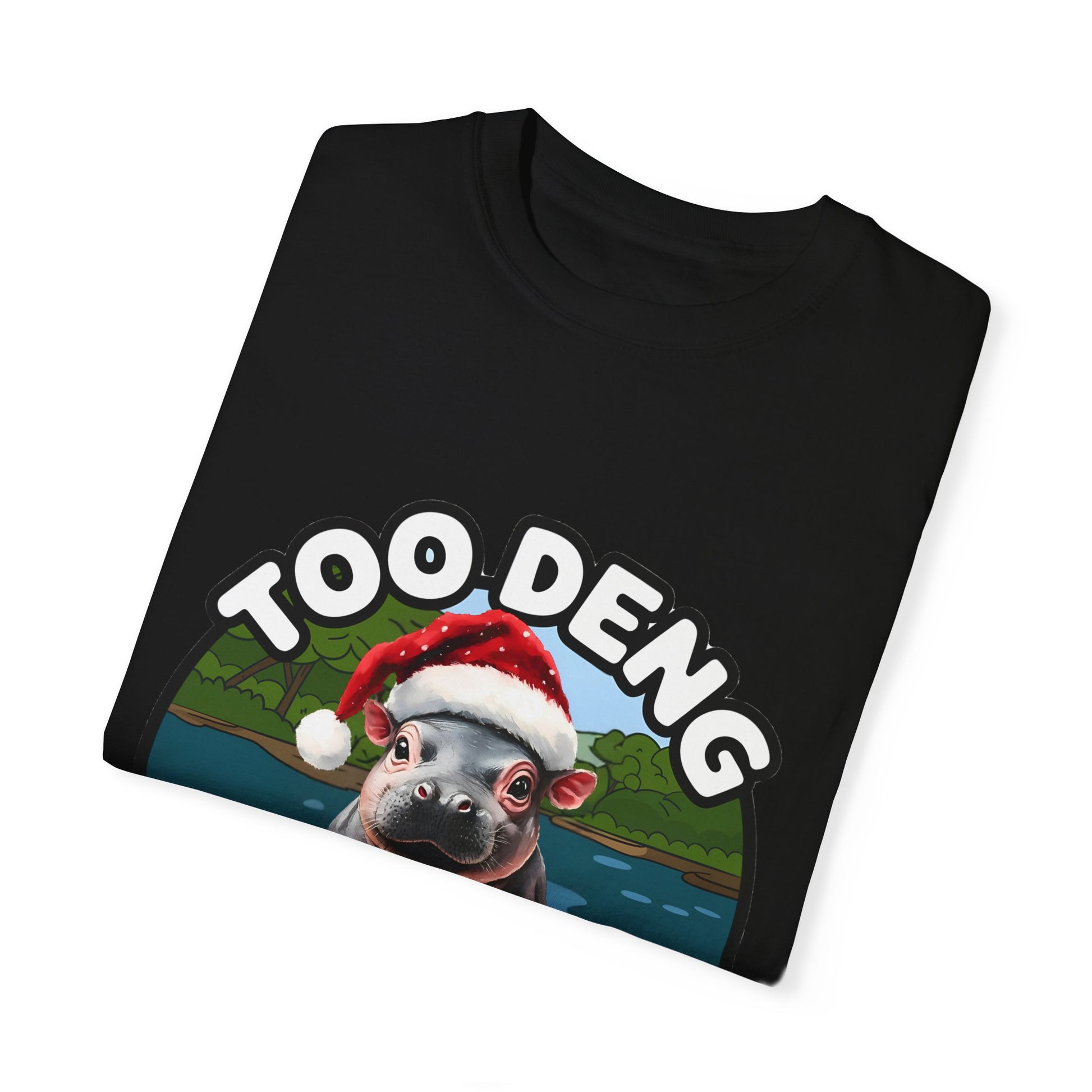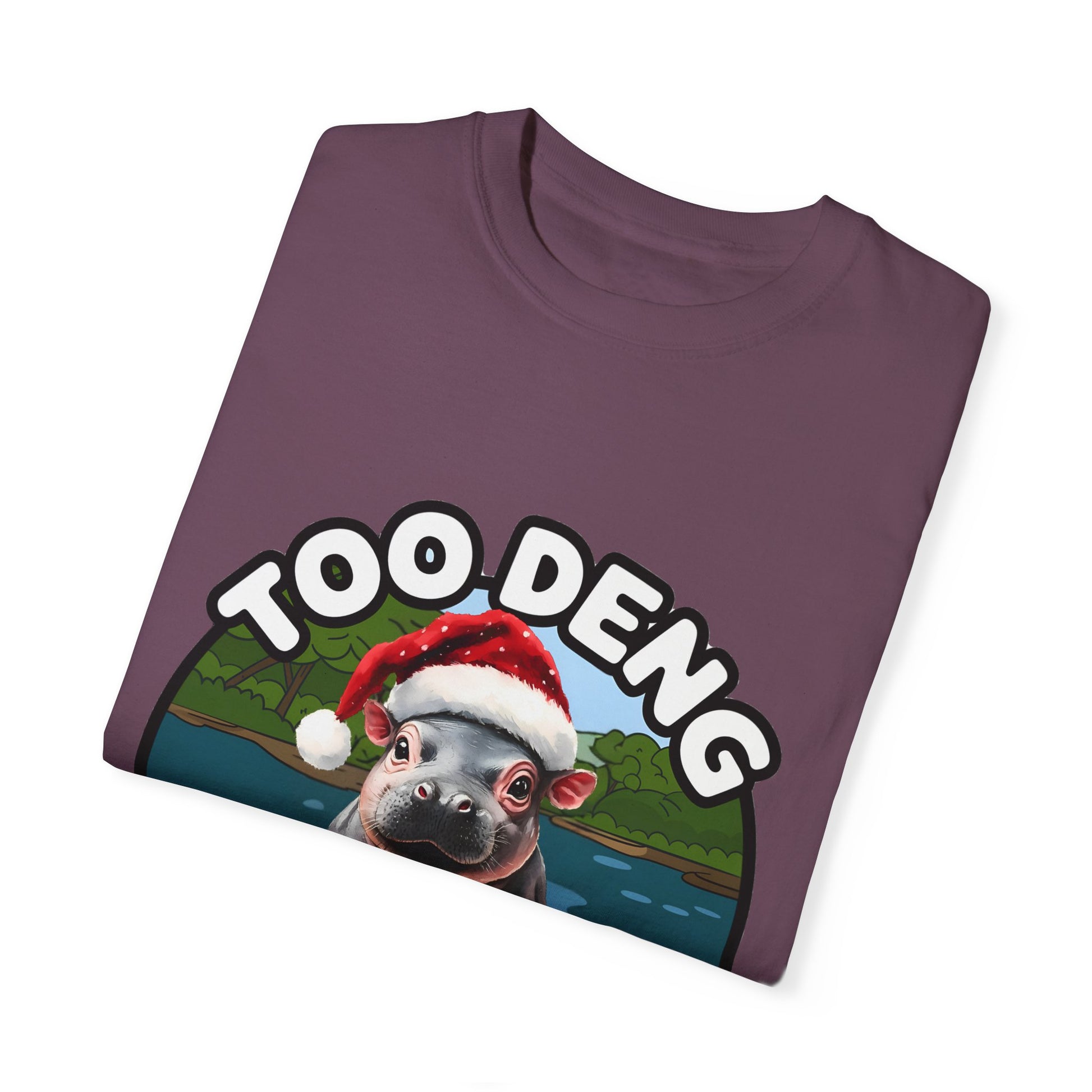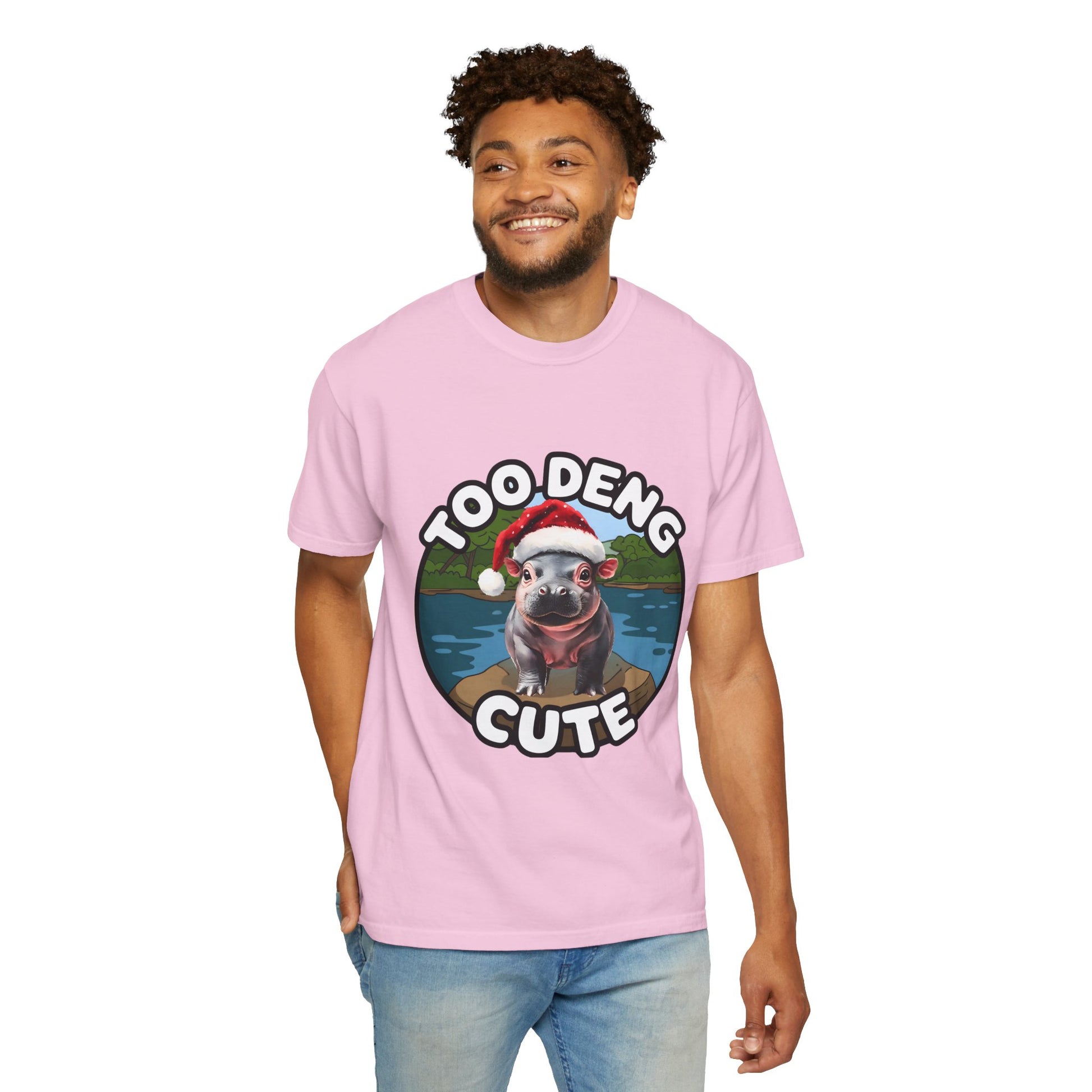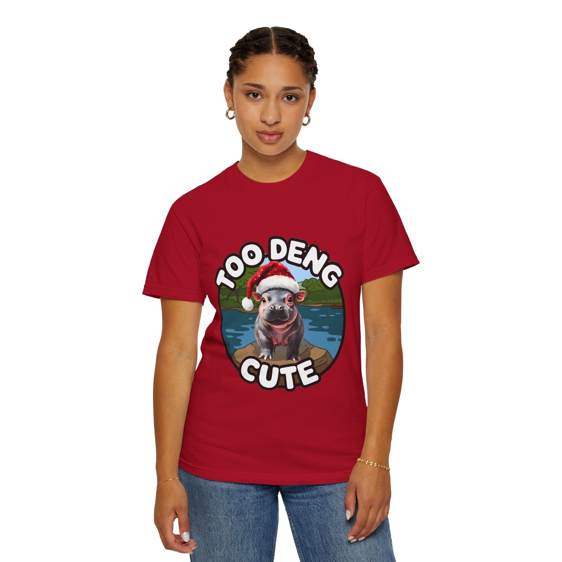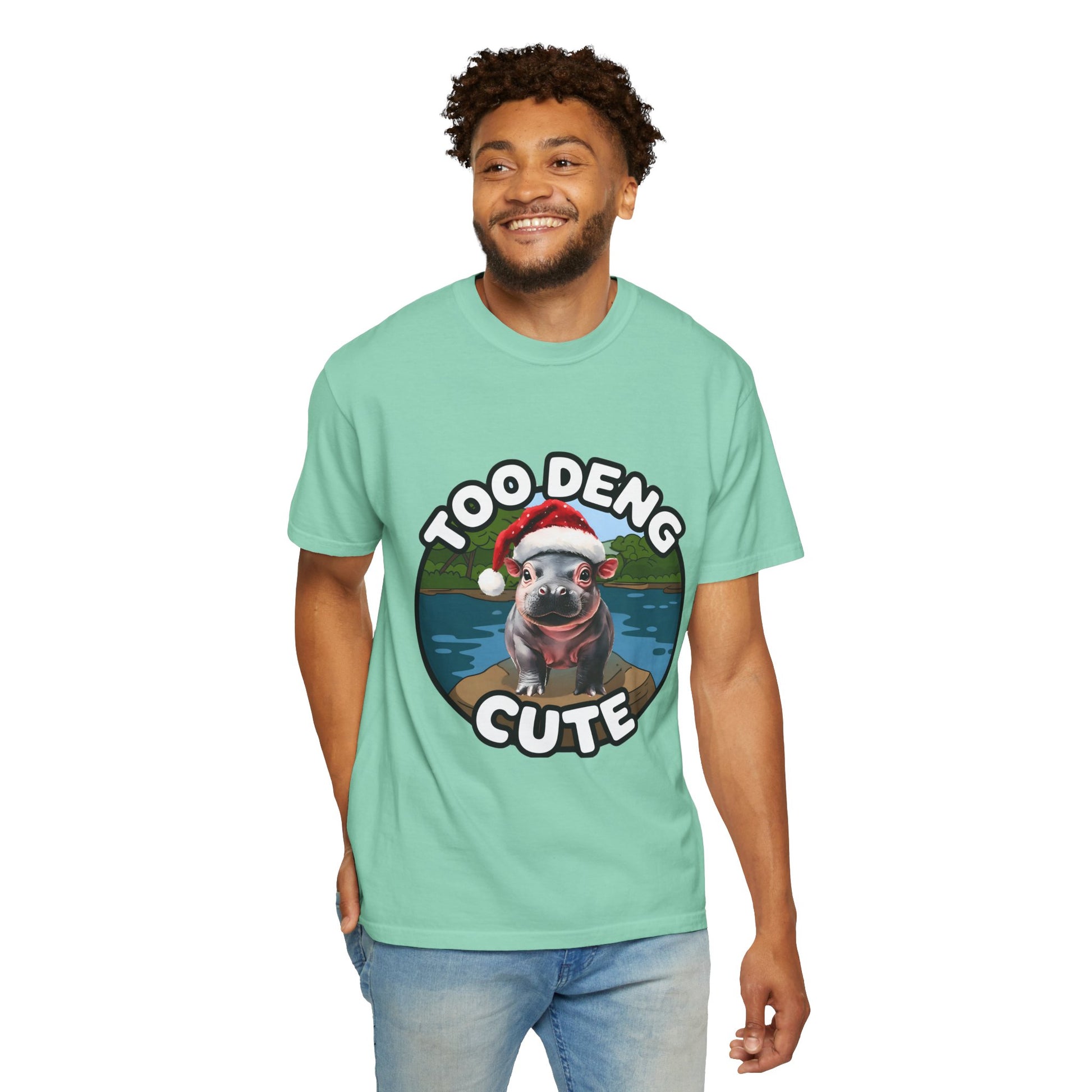 Unisex Garment-Dyed T-Shirt, Moo Deng the Cute Pygmy Hippo | Christmas Holiday Shirt
